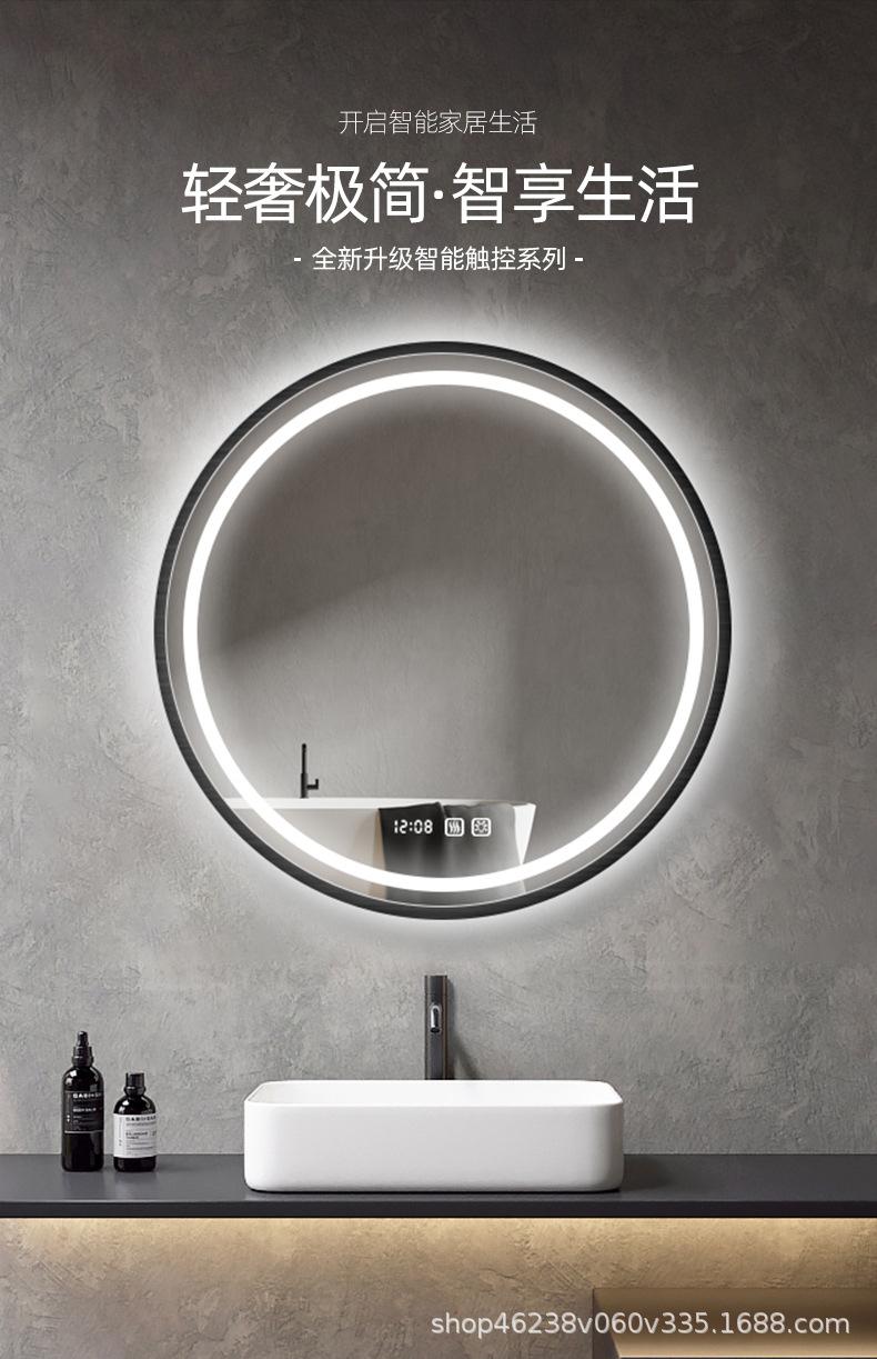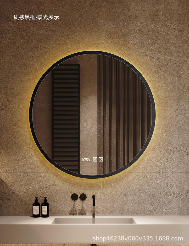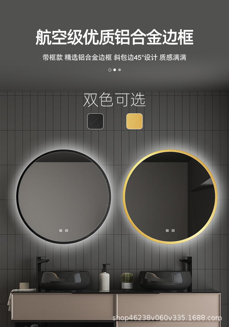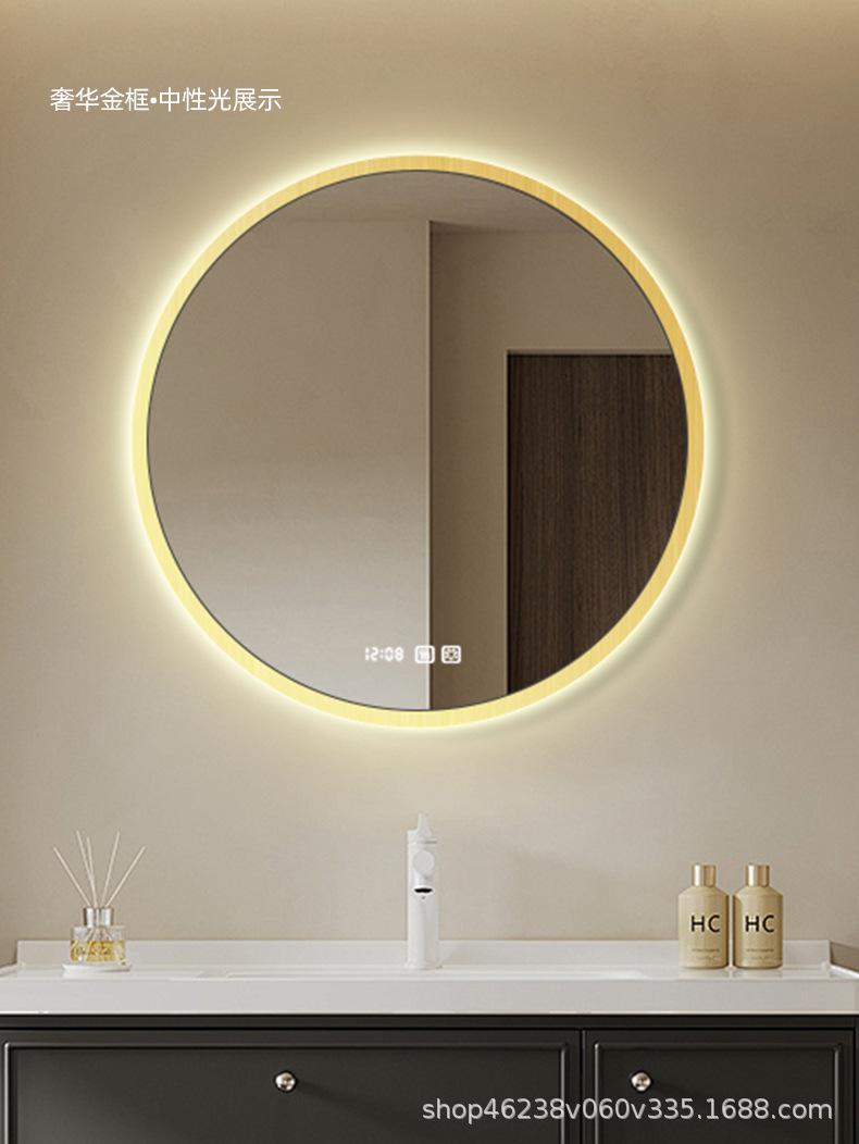 Espejo inteligente para baño, redondo, con marco de aluminio y lámpara, espejo redondo para baño, luz LED de pared con interruptor táctil