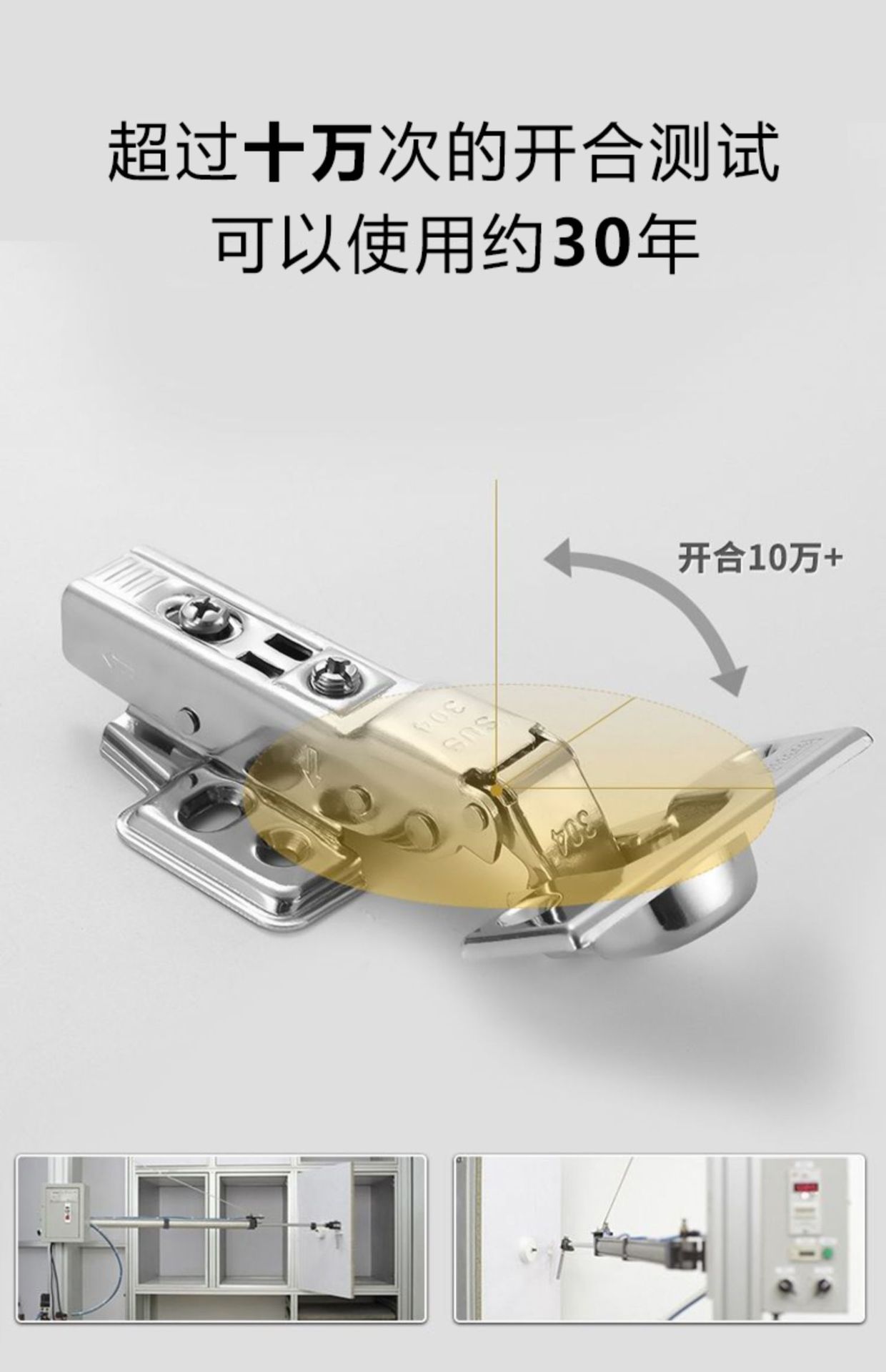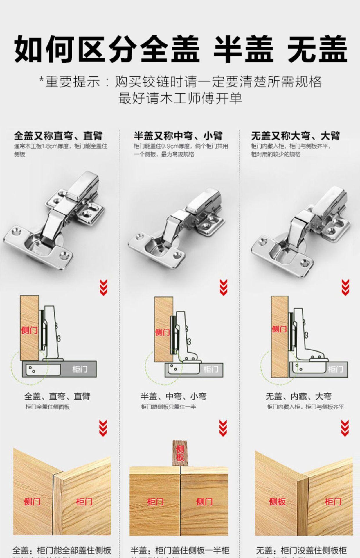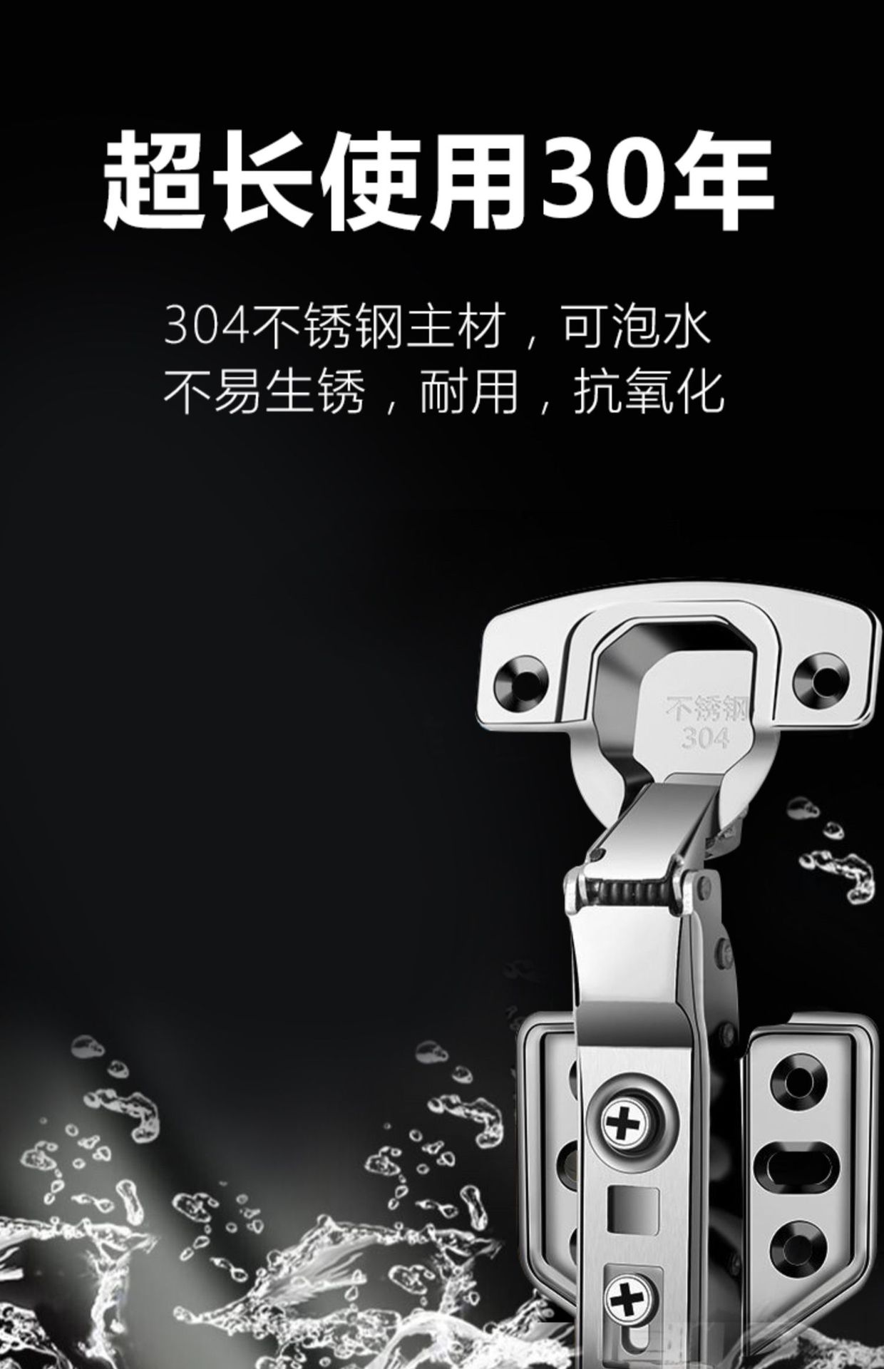 Bisagra de acero inoxidable 304 con amortiguación hidráulica para armario, bisagra de media tapa, recta, curva grande y mediana, plegable.