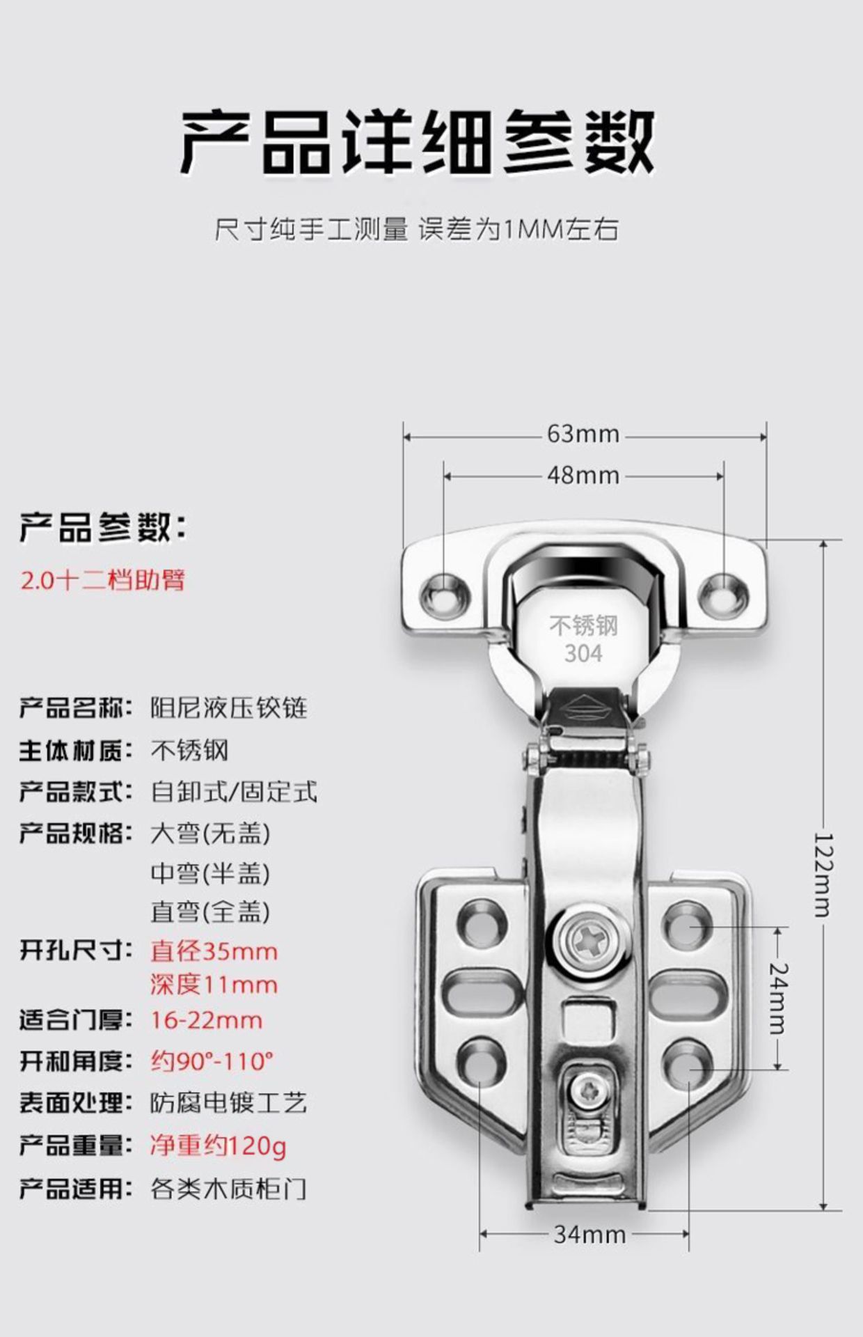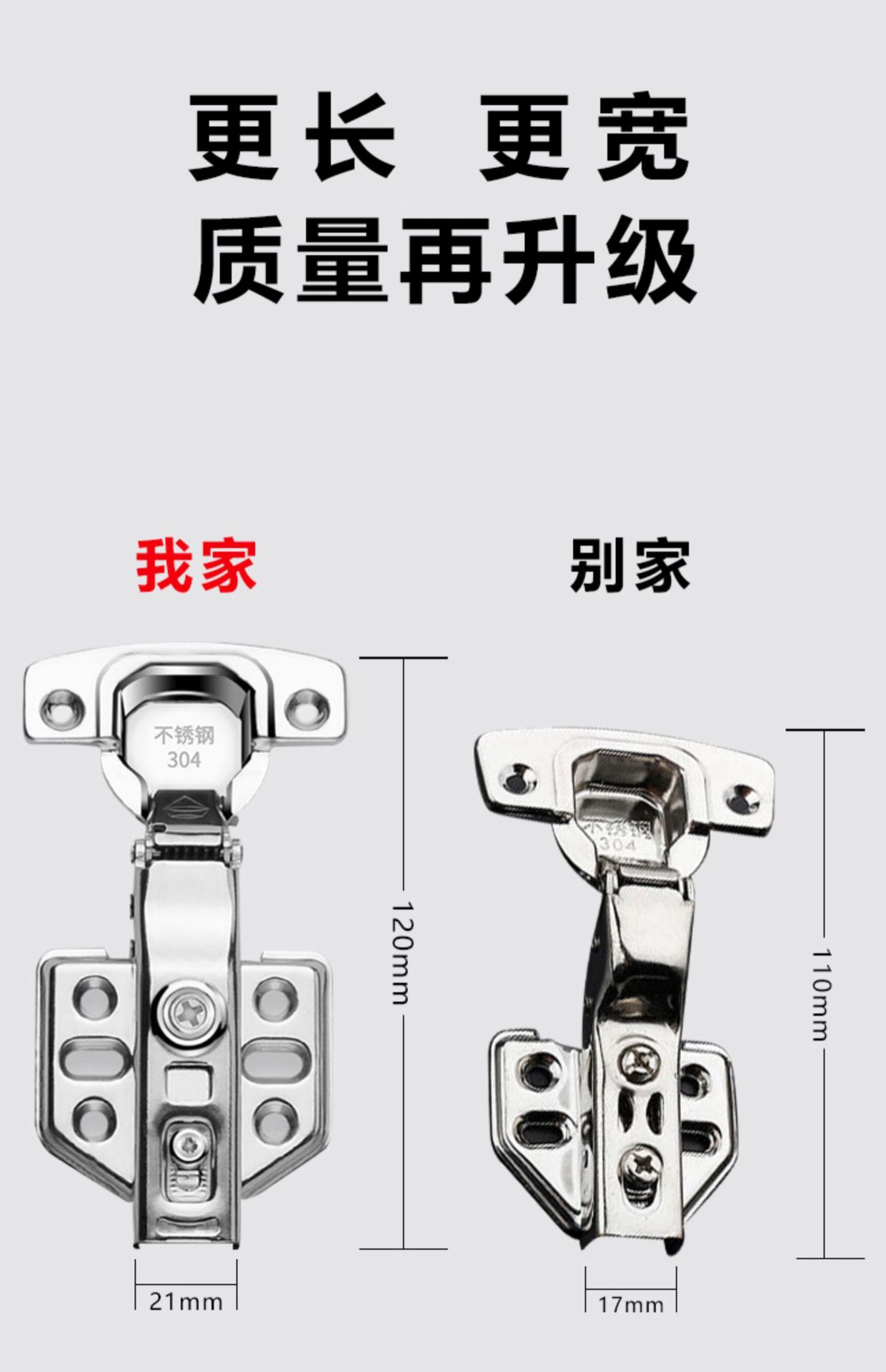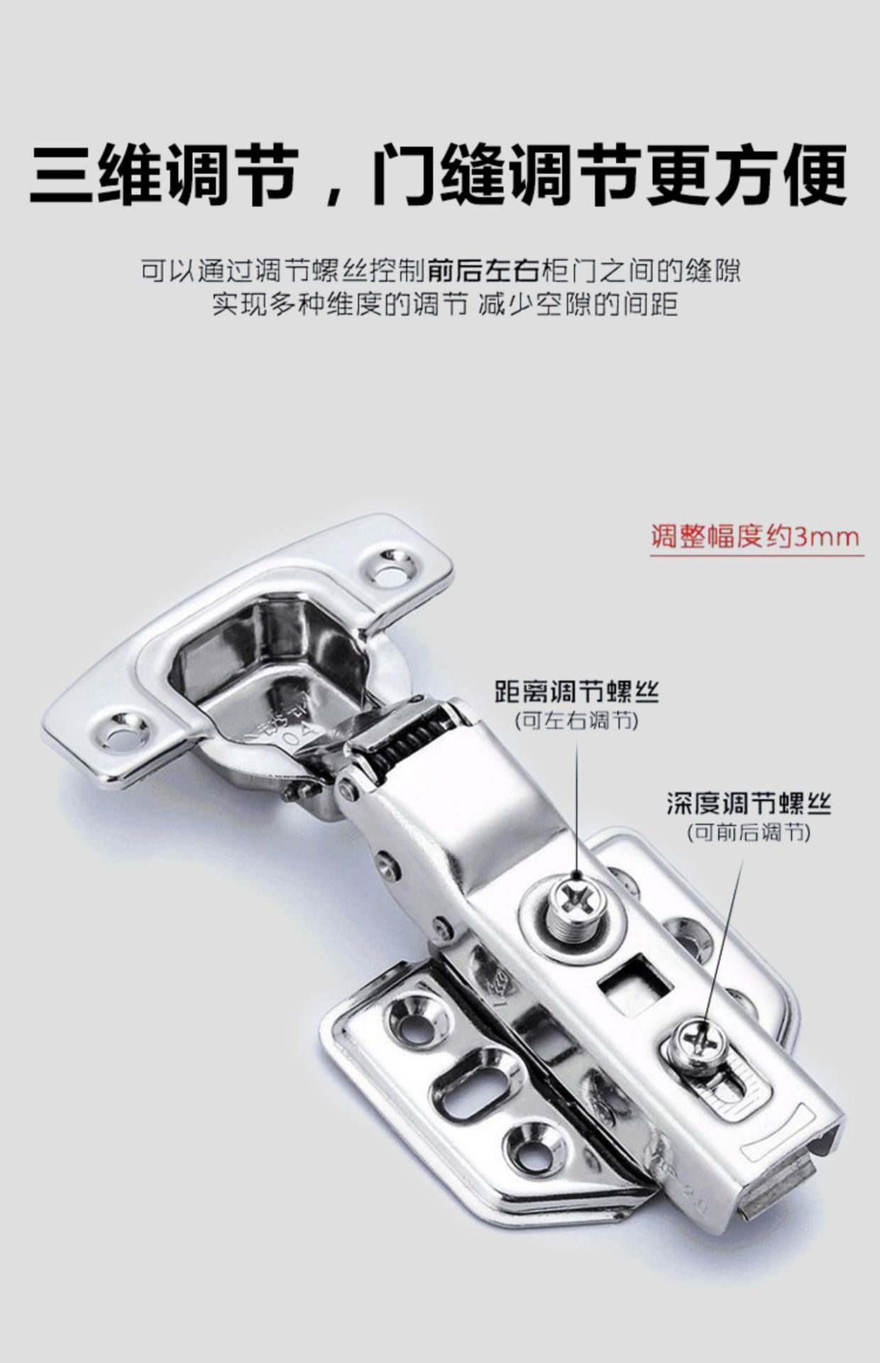 Bisagra de acero inoxidable 304 con amortiguación hidráulica para armario, bisagra de media tapa, recta, curva grande y mediana, plegable.