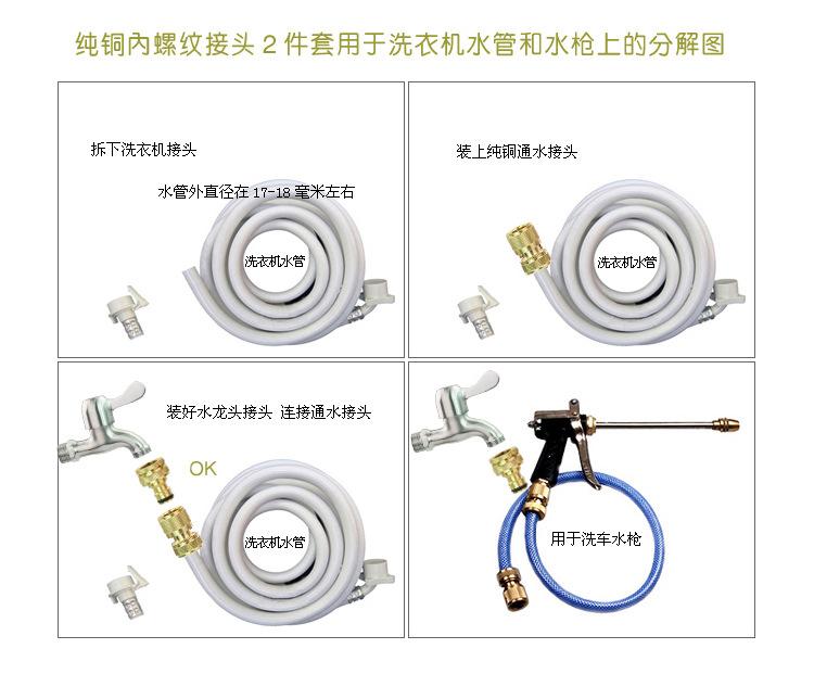 Conector de pistola de agua para lavado de autos, 4 vueltas, 6 puntos, rosca interna, grifo de lavadora, conector rápido de cobre, conector de tubería de agua del grifo