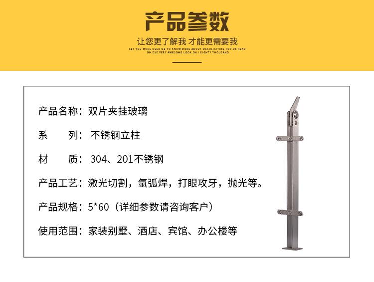 Suministro de columna de vidrio colgante de doble clip 5*60 columna de puente de acero inoxidable columna de valla de ingeniería de vidrio de metro