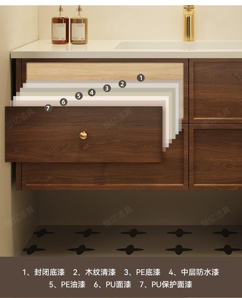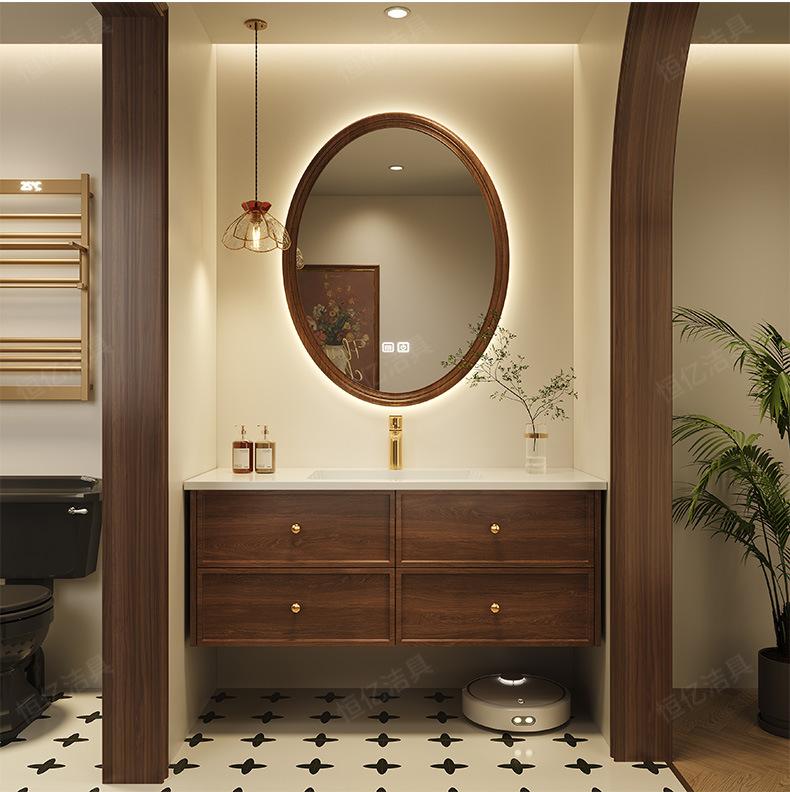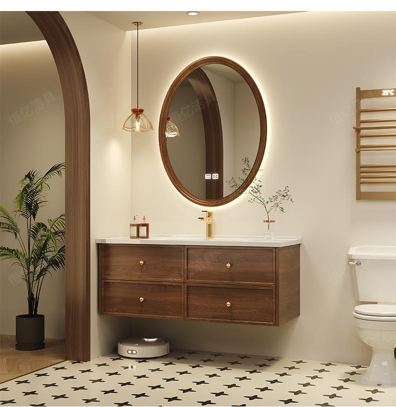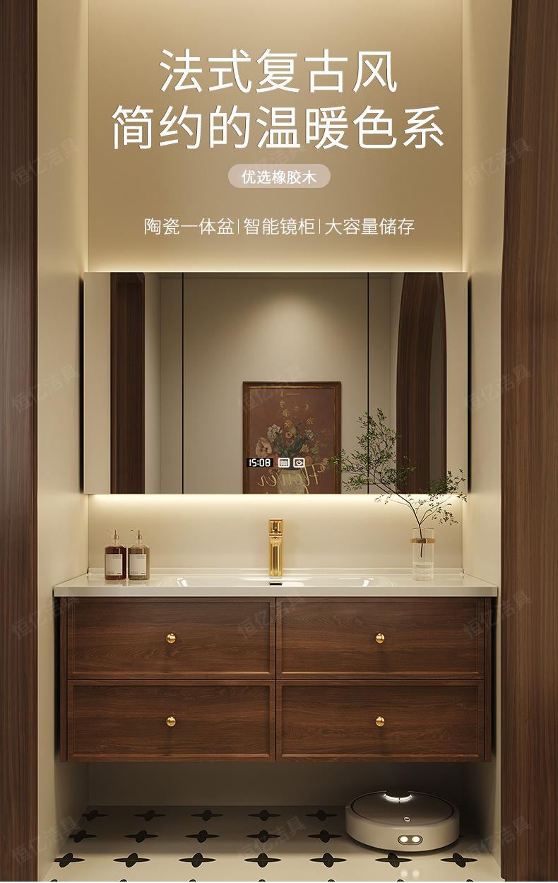 Mueble de baño de madera maciza de estilo antiguo medio, combinación de lavabo de cerámica francesa, todo en uno, mueble de lavabo, 20 unidades