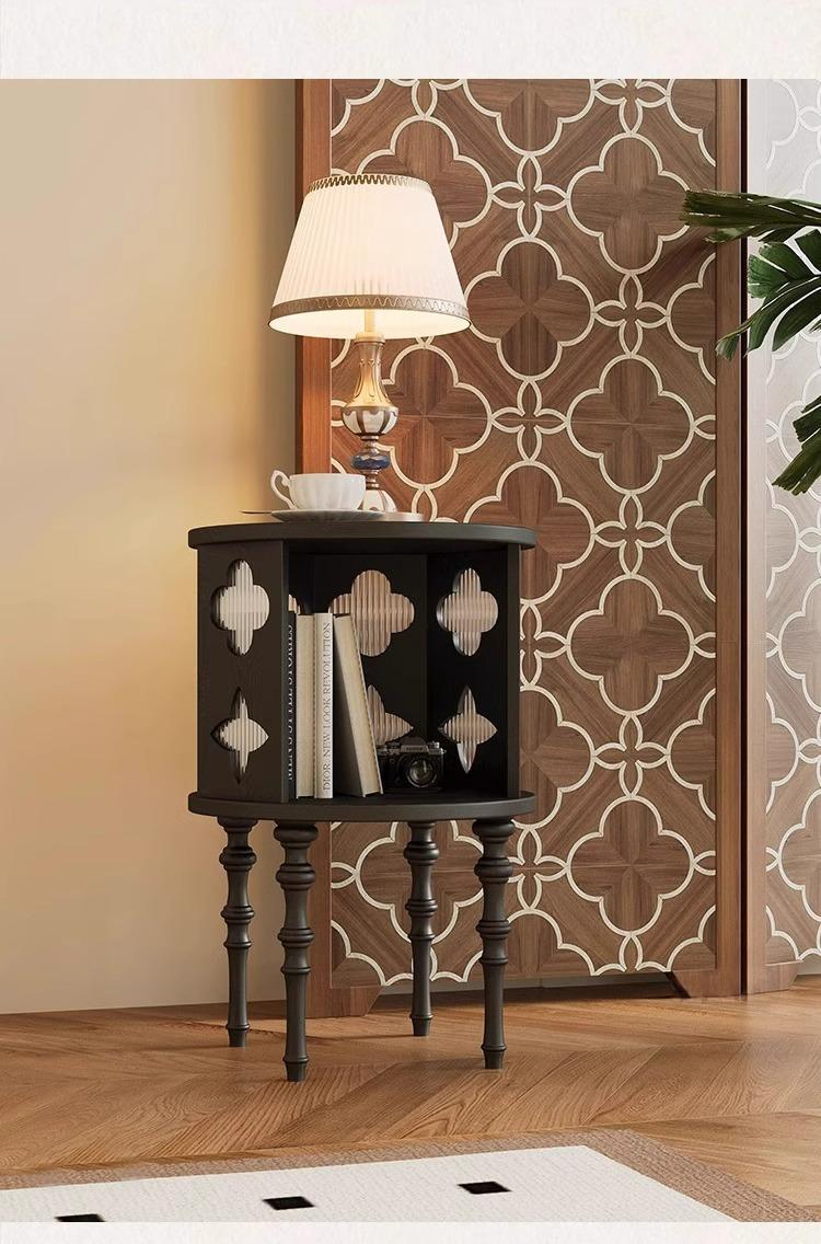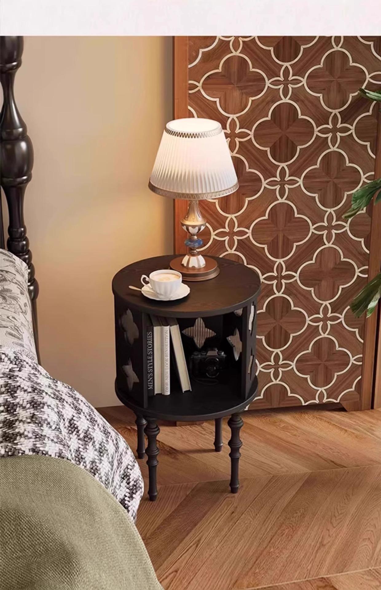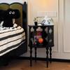 Mesita de noche de madera maciza, pequeña, para dormitorio, color negro, moderna, sencilla, estrecha, para guardar cosas.