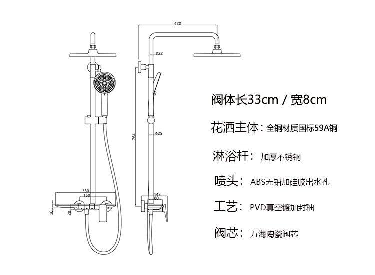 Traje de ducha transfronterizo todo cobre gris plomo blanco leche traje de ducha hogar hotel ingeniería barra elevadora ducha presurizada