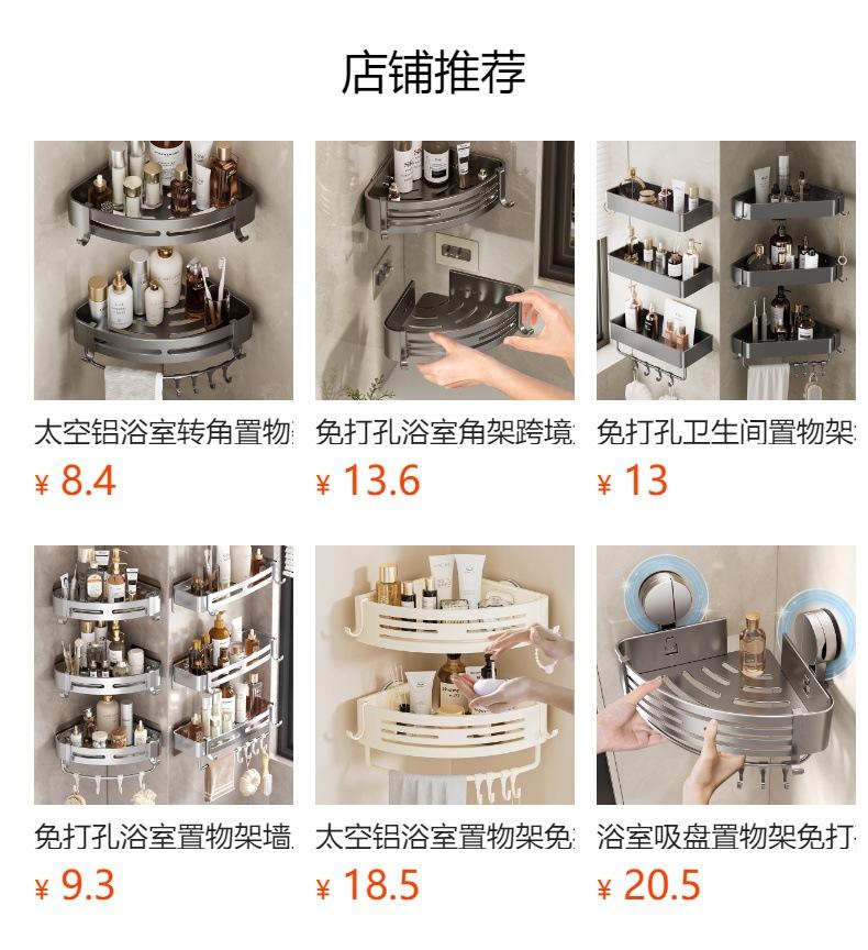 Estante de almacenamiento sin perforaciones para baño, estante de almacenamiento de pared para lavabo de baño, estante de almacenamiento de esquina de aluminio plateado
