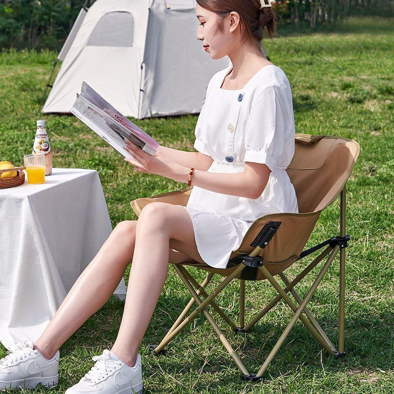 Compra Silla plegable para exteriores, sencilla y ligera, con forma de luna, gruesa, portátil, para picnic y camping, suministros esenciales al por mayor en Joom.pro