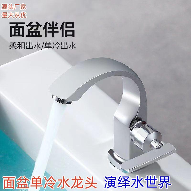 Grifo de lavabo de un solo orificio de aleación, grifo de lavabo de baño, grifo de agua fría simple, fuente de fábrica recta