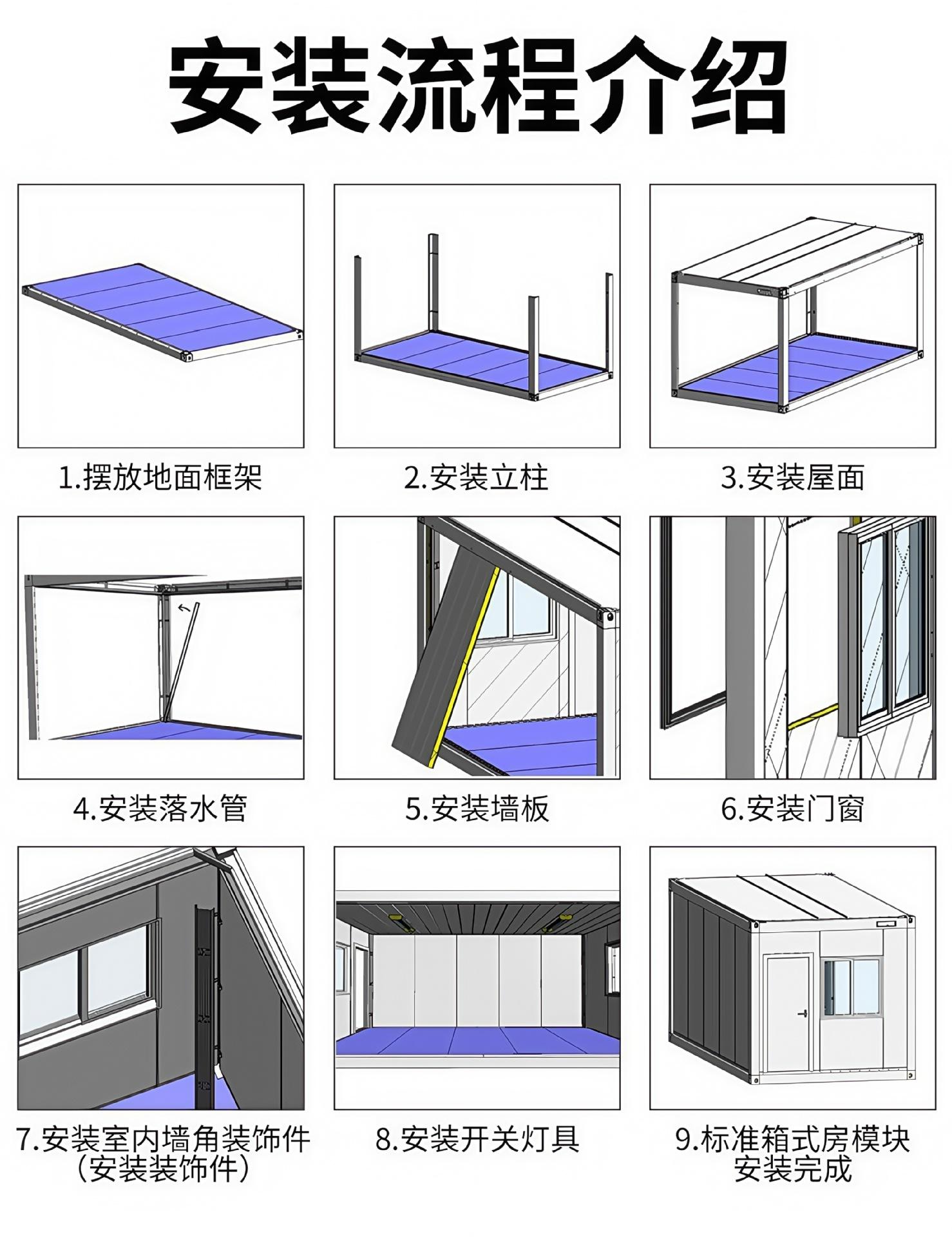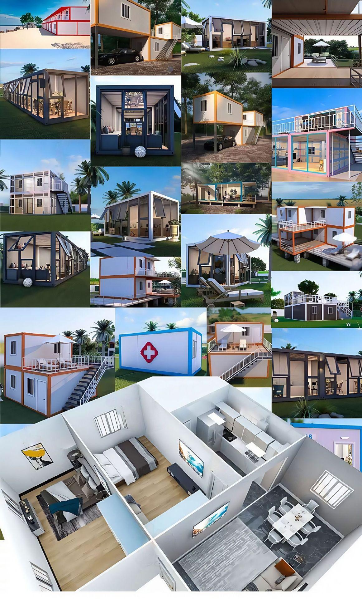 Casa móvil contenedor ensamblada Casa contenedor combinada de oficina Caja de embalaje para sitio Casa contenedor móvil