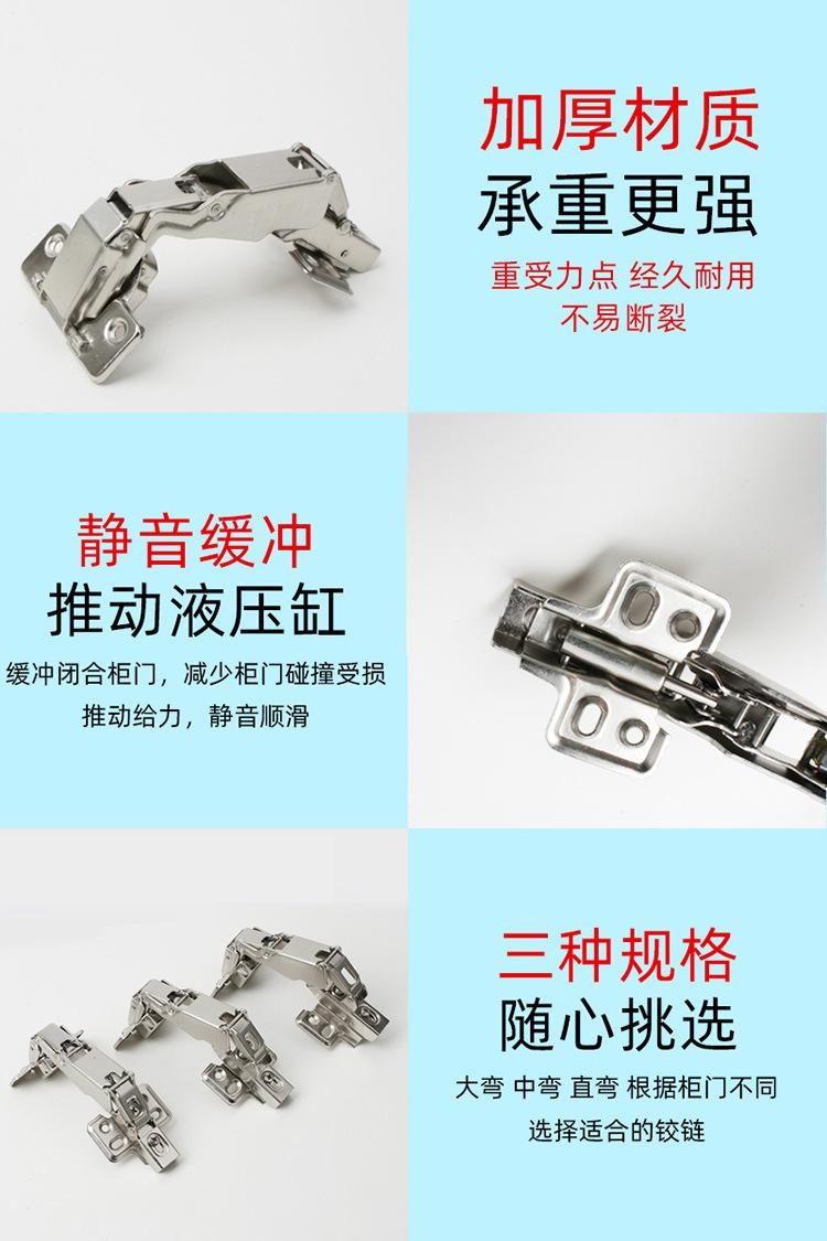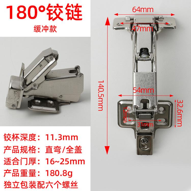 Nombre del producto: Bisagra de puerta de gabinete de ángulo grande engrosada de 180 ° con amortiguador de amortiguación, bisagra hidráulica, bisagra plana para gabinete de esquina de armario (bisagra hidráulica para gabinete de 180 °)