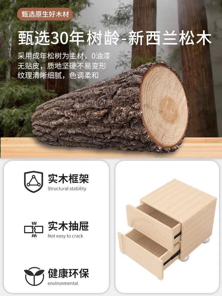Mesa de Noche Pequeña de Madera Maciza Moderna Simple Lujo Ligero Gabinete de Almacenamiento de Noche Juego Completo Mesa de Noche Estilo Crema Mesa de Noche para el Hogar Mesa de Noche