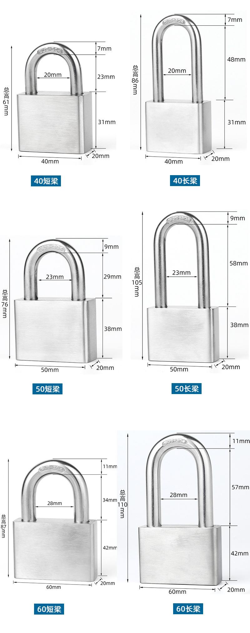 Candado antirrobo NBYT304 de acero inoxidable de viga corta para exteriores, resistente al agua y al óxido, cerradura para puerta de almacén