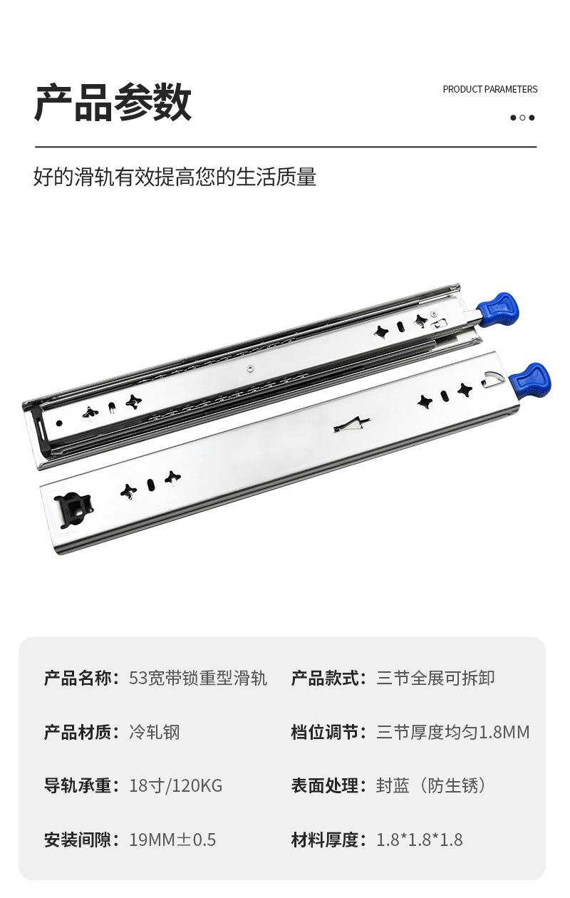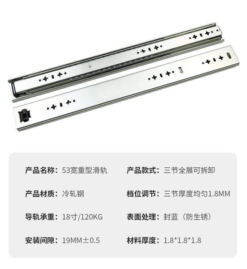 Riel deslizante de alta resistencia de 53 de ancho guía de bloqueo industrial RV modificado guía de gran capacidad de carga riel guía de búfer triple fabricante