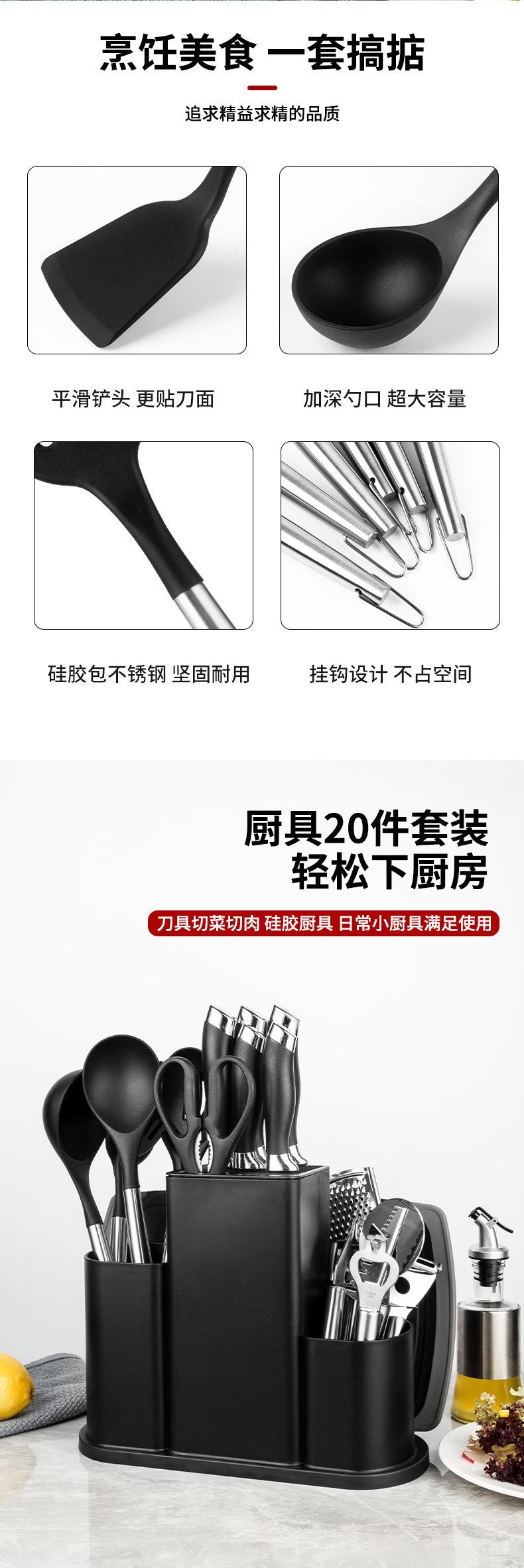 Juego de 20 cuchillos de cocina multifuncionales para el hogar, de silicona, con almacenamiento integrado, para cuchillos, palas y cucharas de sopa.