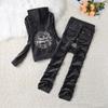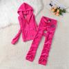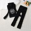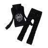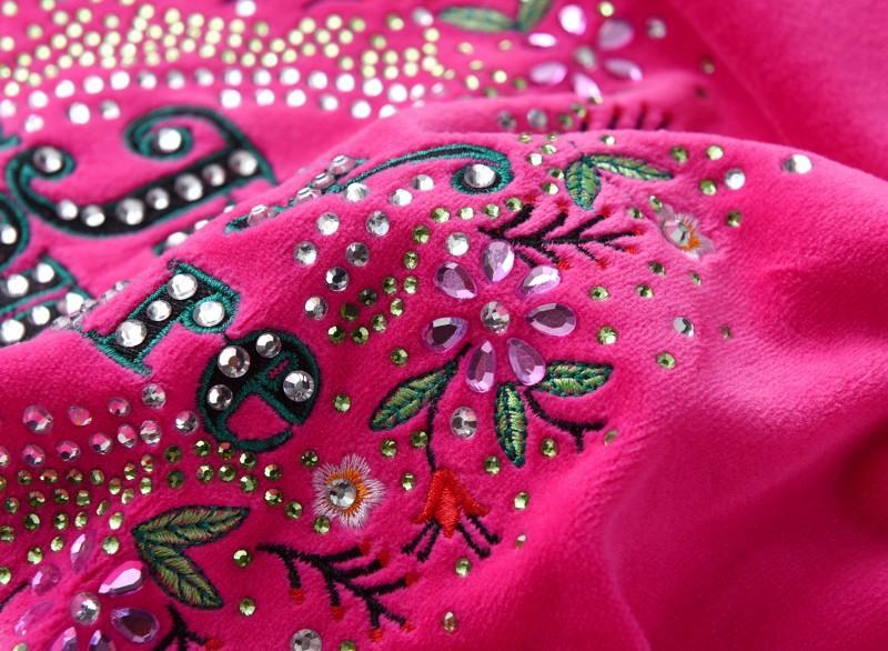 Traje deportivo de terciopelo para mujer, conjunto de dos piezas con capucha y pantalones, con letras de flores y diamantes de imitación, estilo europeo y americano, para primavera y otoño