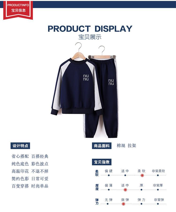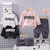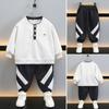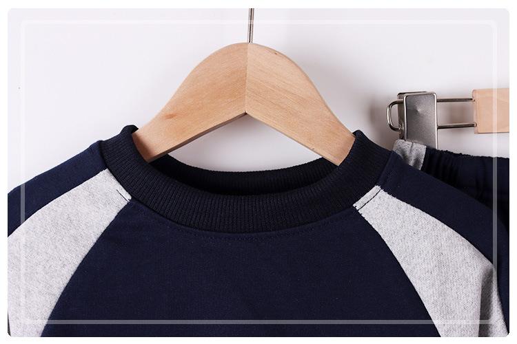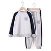 Conjunto de sudadera y pantalones deportivos informales de primavera y otoño 2025 para niños con letras bordadas y colores combinados.