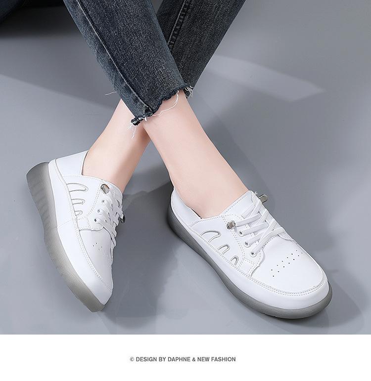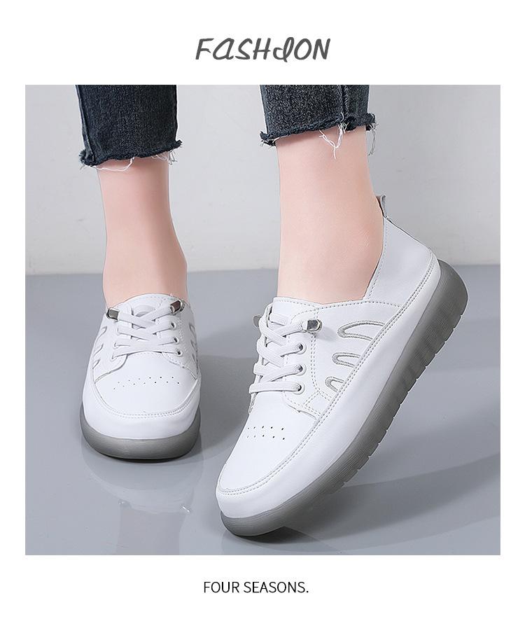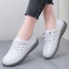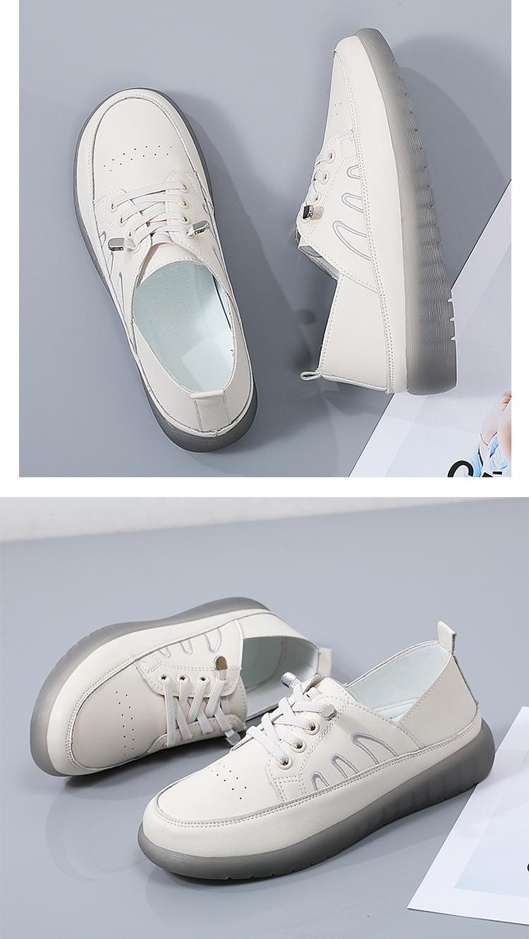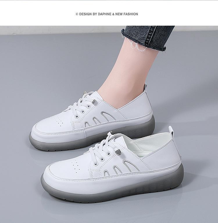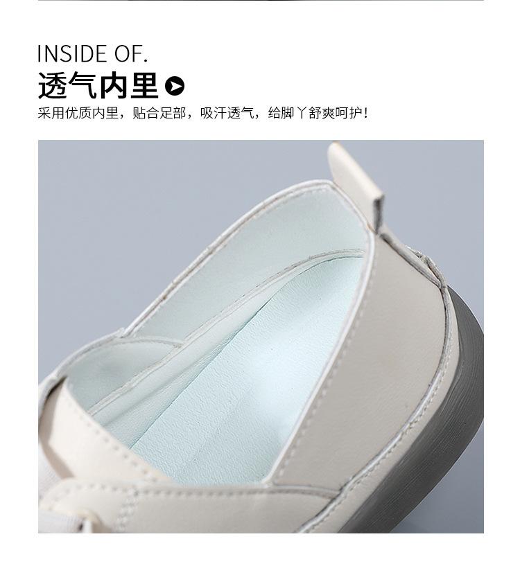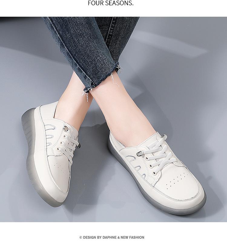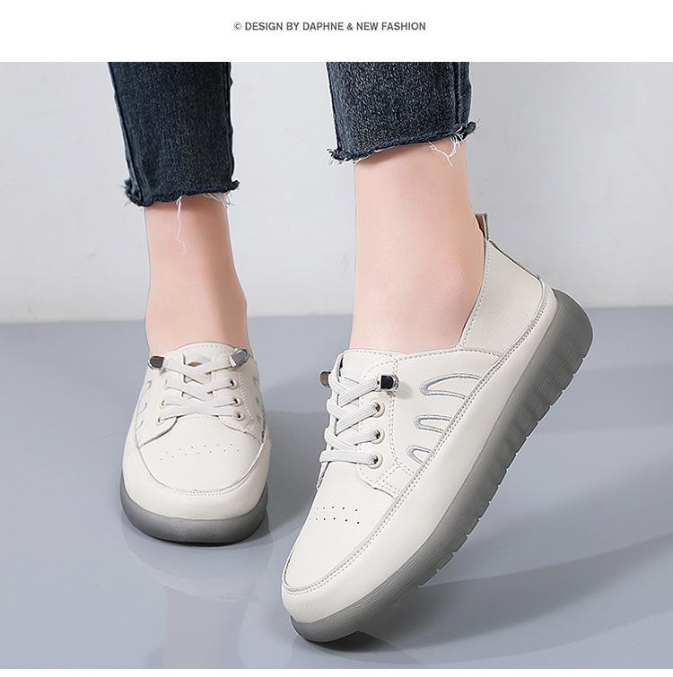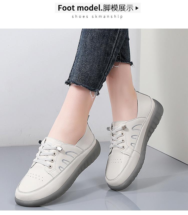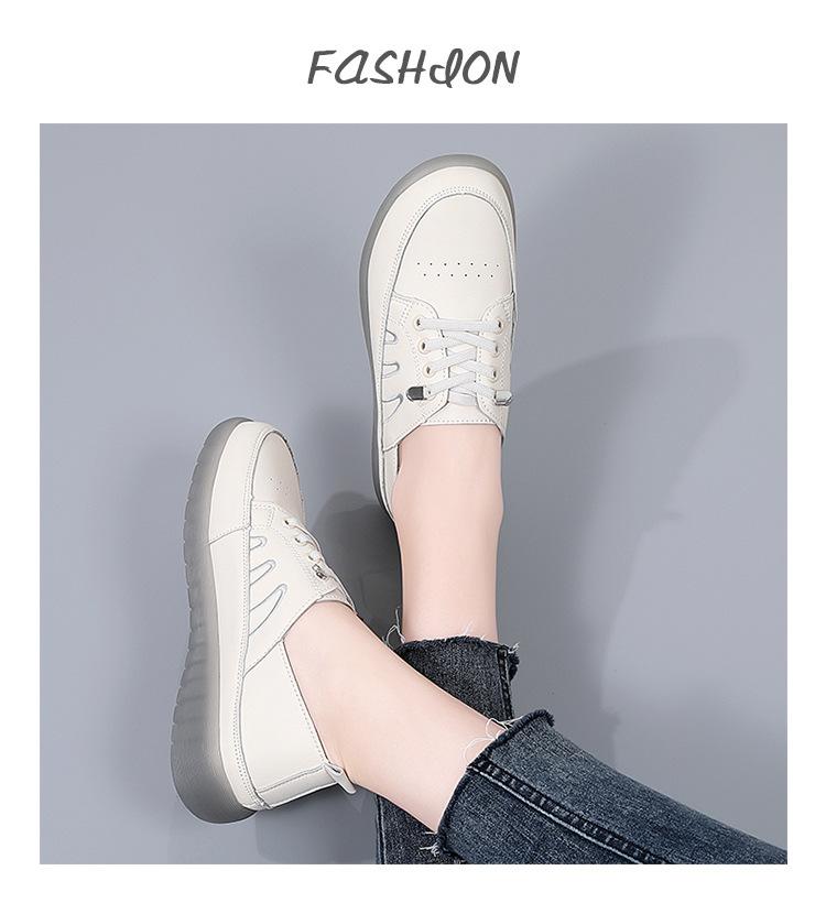 Zapatos blancos para mujer, primavera 2025, nuevos zapatos de piel para madre con suela suave y superficie suave, con suela de vacuno y guisantes.