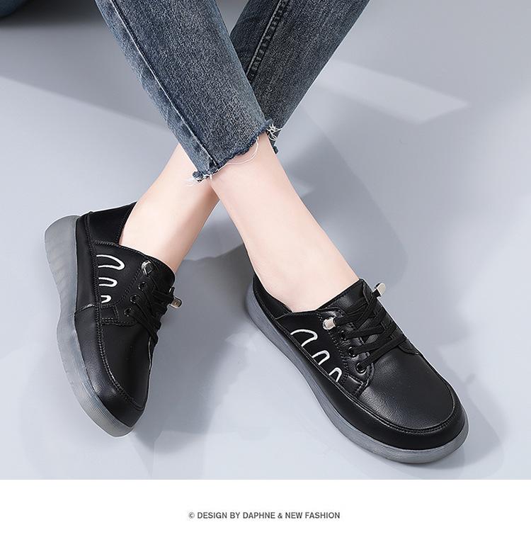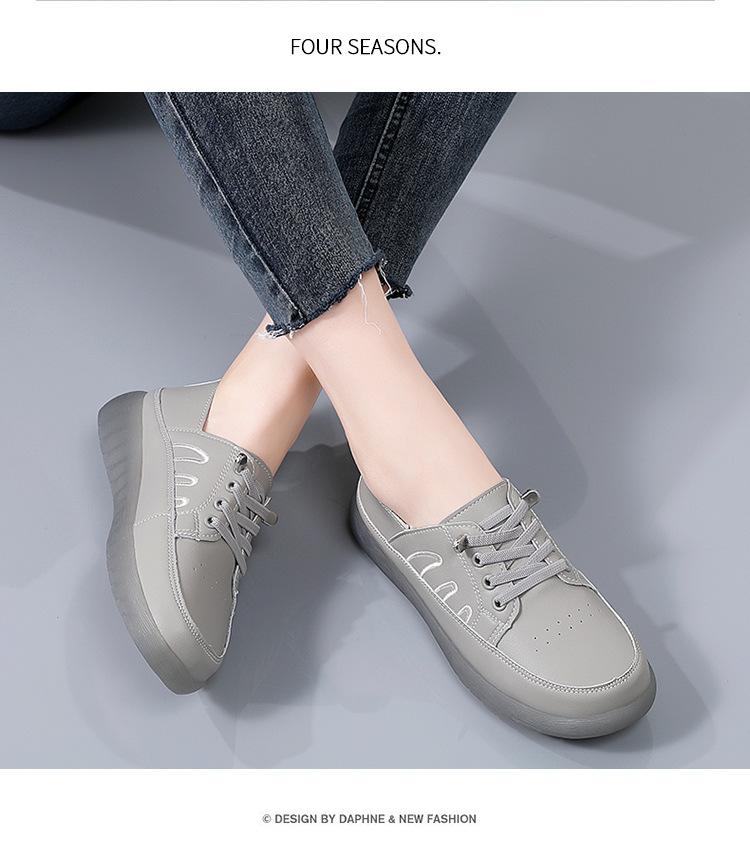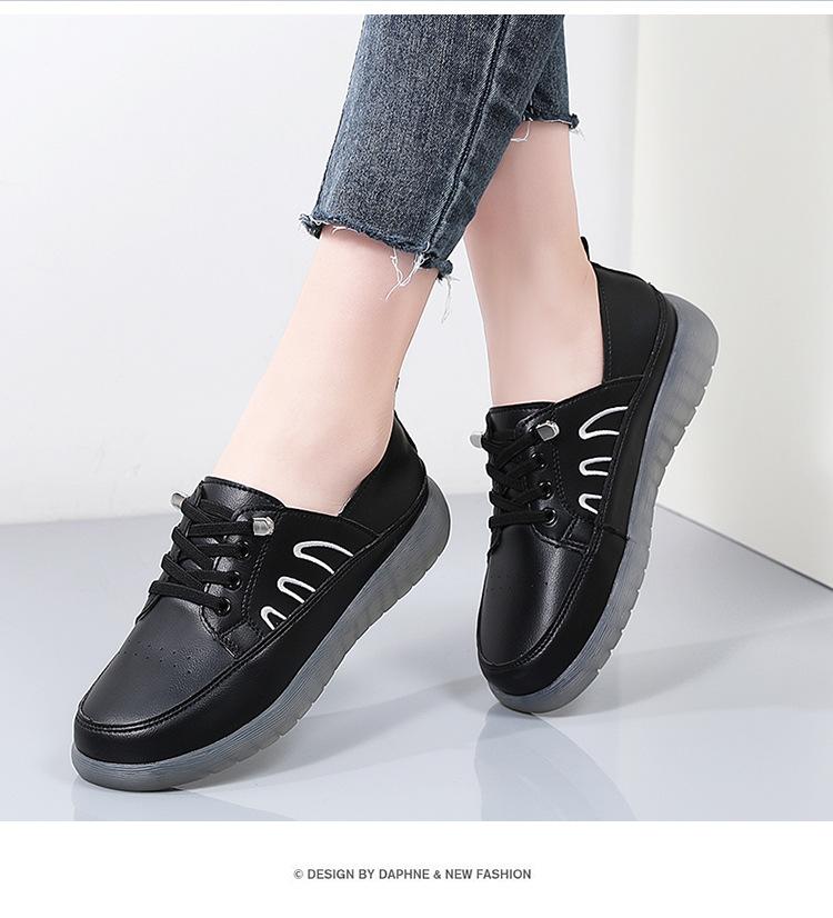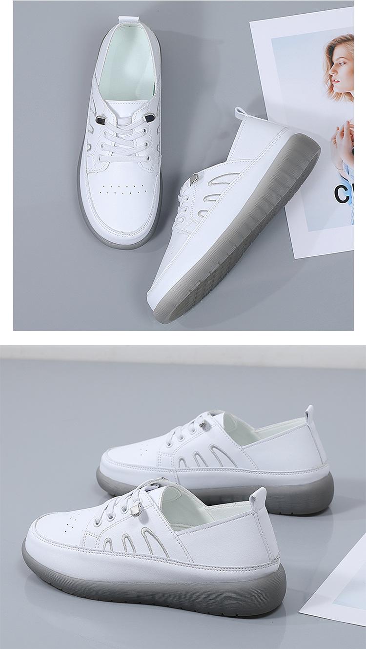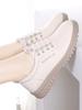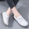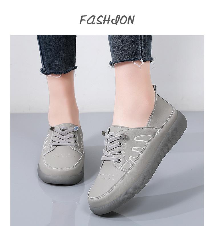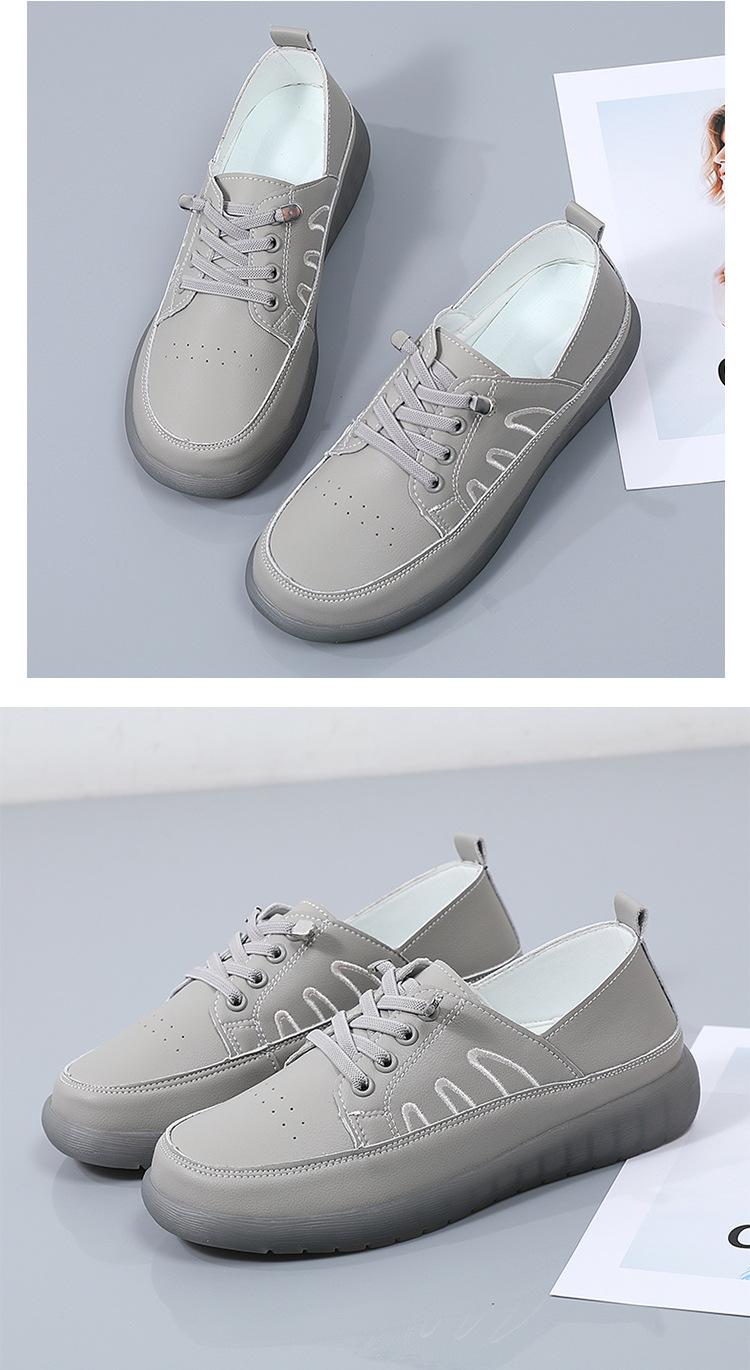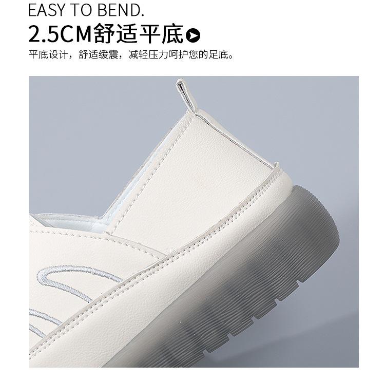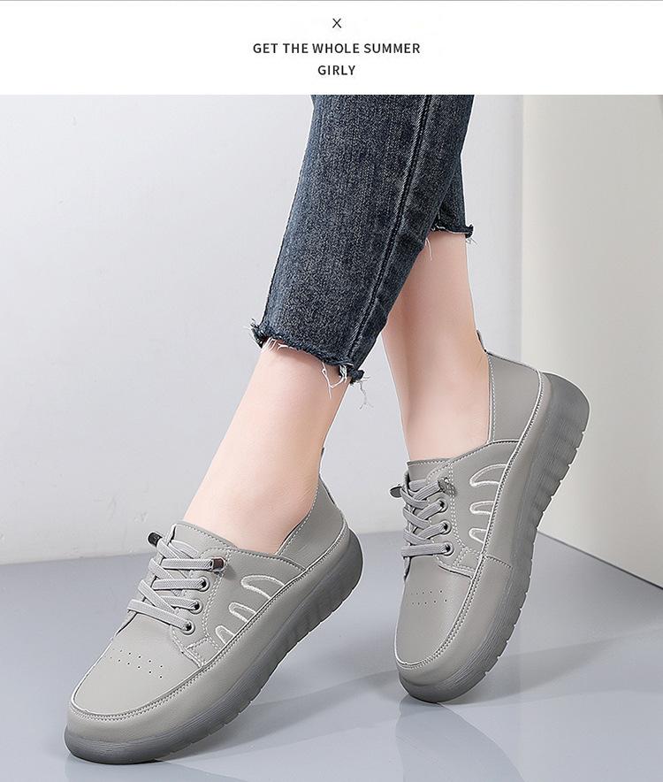 Zapatos blancos para mujer, primavera 2025, nuevos zapatos de piel para madre con suela suave y superficie suave, con suela de vacuno y guisantes.