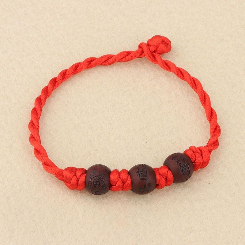 Pulsera Gruesa de Cuerda Roja Tejida a Mano de Tres Caracteres Estilo Étnico Cuerda de Mano