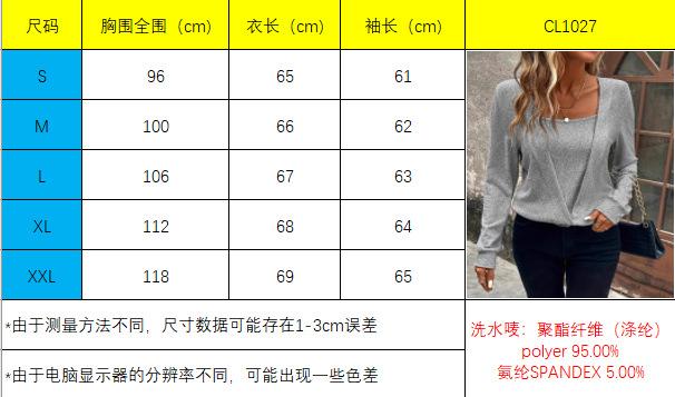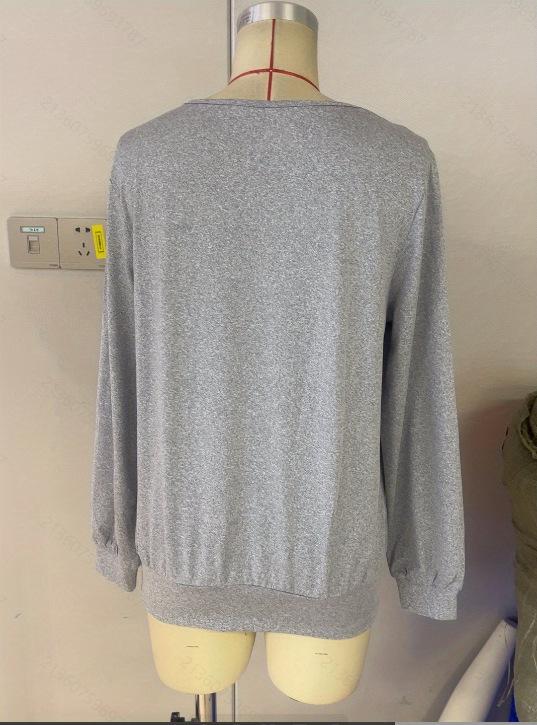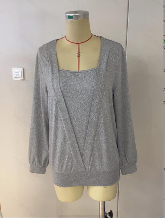 Compra Camiseta informal holgada de manga larga con cuello en V de dos piezas para mujer, comercio exterior de otoño 2024, Amazon, transfronteriza europea y americana al por mayor en Joom.pro
