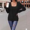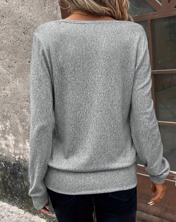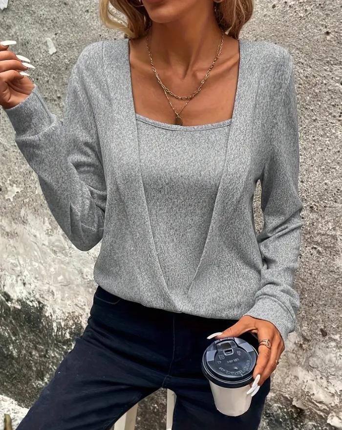 Camiseta informal holgada de manga larga con cuello en V de dos piezas para mujer, comercio exterior de otoño 2024, Amazon, transfronteriza europea y americana