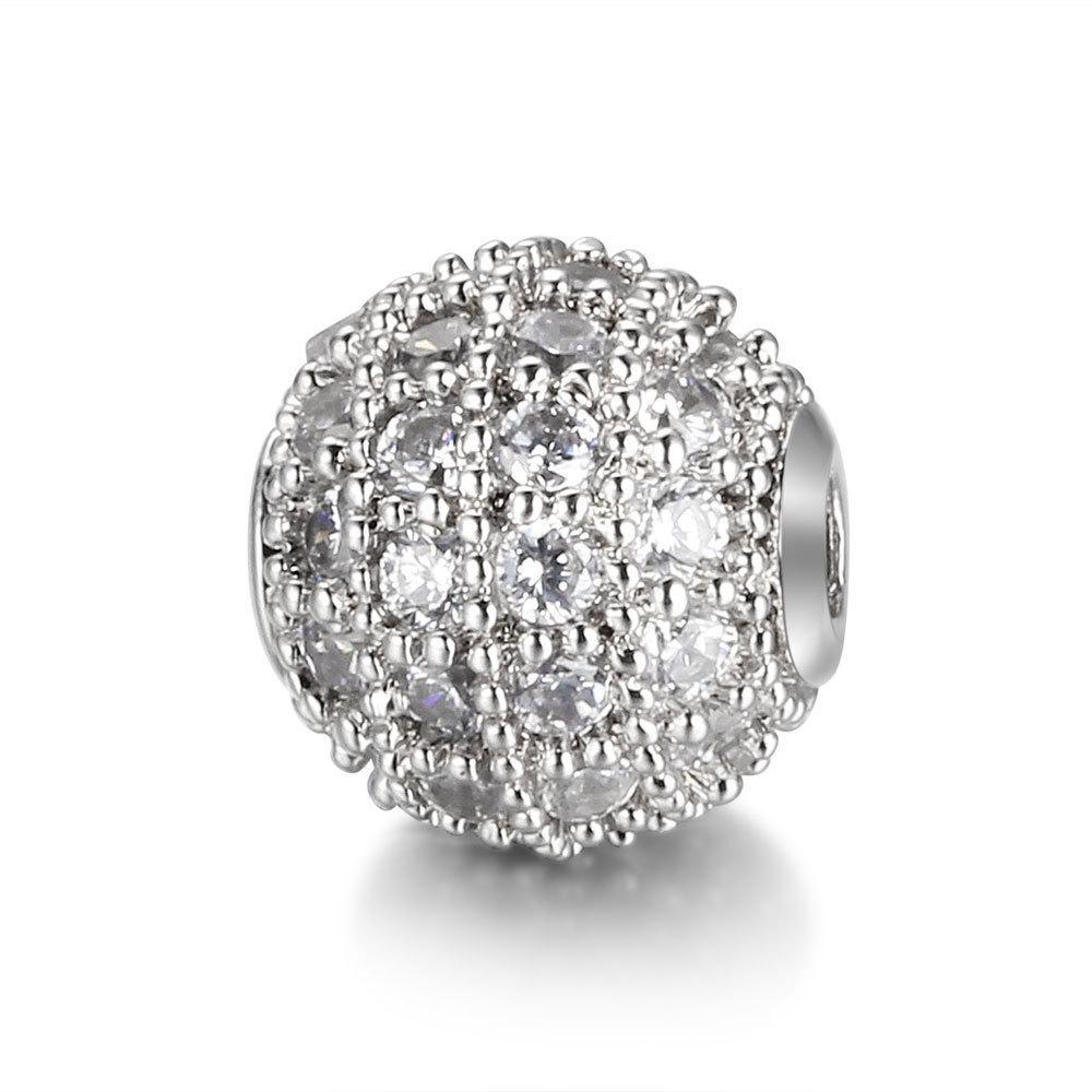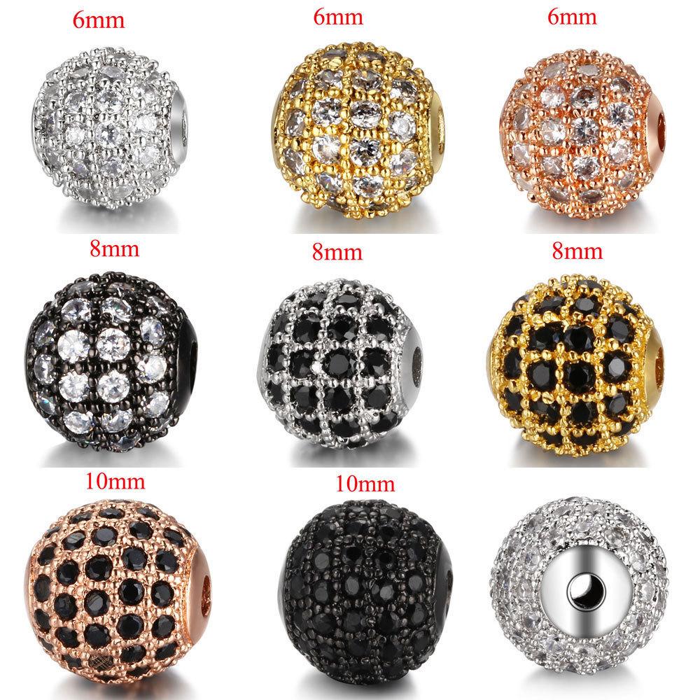 Cuentas Redondas de Cobre Zirconio de 6/8/10 mm DIY Pulsera Accesorios para Pulsera Cuentas Espaciadoras Bola de Diamantes con Cuentas Cuentas Sueltas Cuentas de Zirconio