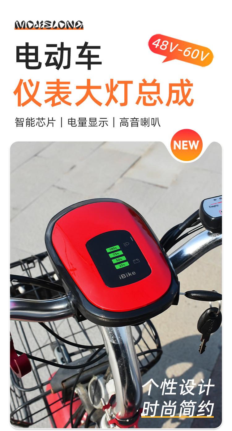 Bicicleta eléctrica 48V conjunto de medidor 60V indicador de potencia faro LED bloqueo eléctrico de puerta bocina faro integrado