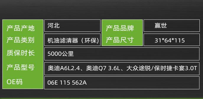 06E115562A Es Adecuado para Audi A6L/Q7/Touareg/Cayenne Elemento de Filtro de Aceite Mallas de Aceite Filtro de Coche
