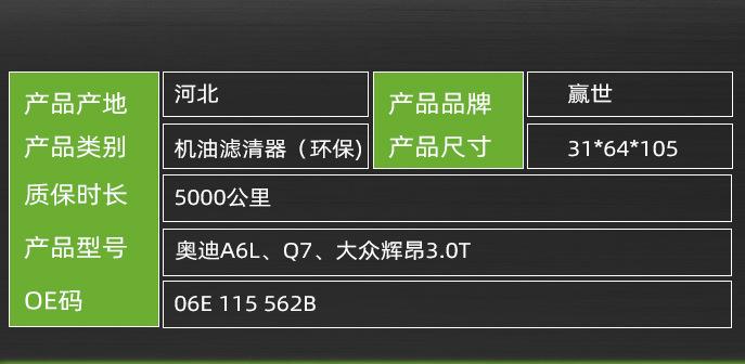 06E115562B Es Adecuado para Audi A6L/Q7/Volkswagen Phaeton/Elemento de Filtro de Aceite Filtro de Coche