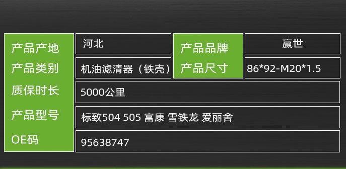 95638747 Filtro de Aceite Mallas de Aceite Elemento de Filtro de Coche Es Adecuado para 504/505/Elysee/Fu Kang
