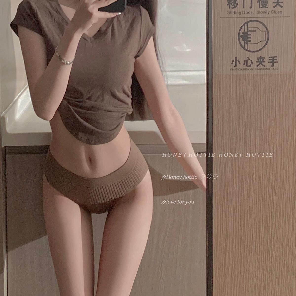 Ropa interior clásica básica americana sencilla para mujer, de cintura media, de algodón, cómoda, pura y sexy.