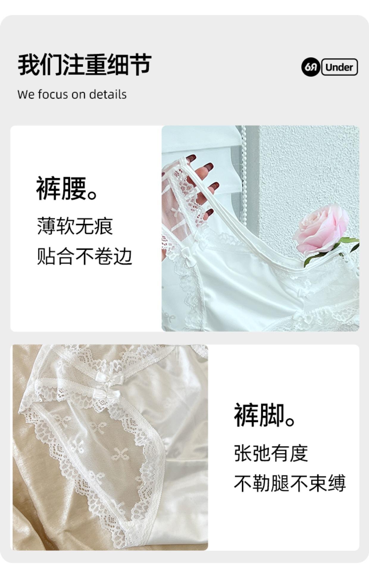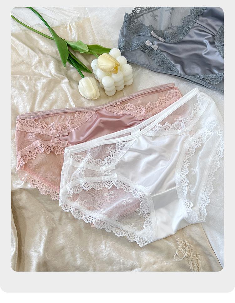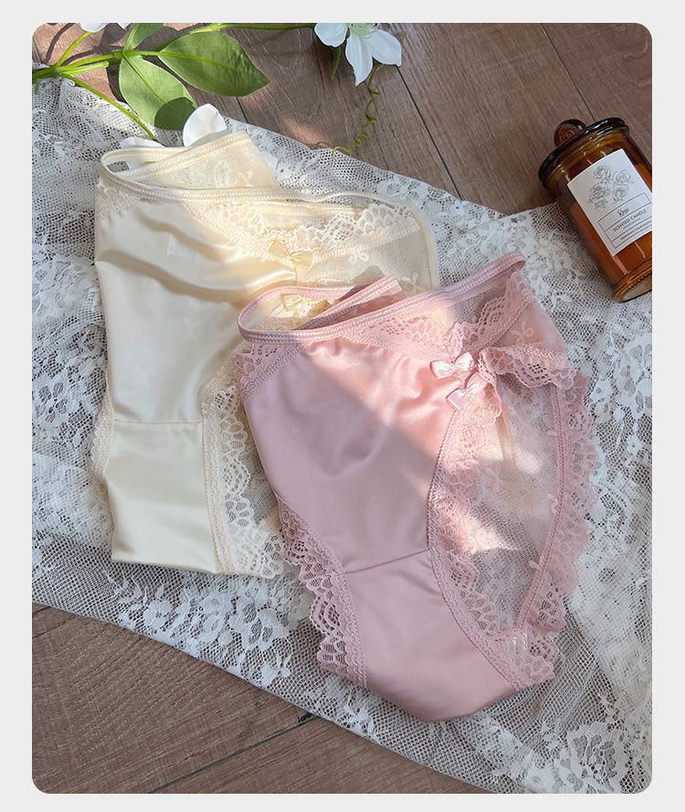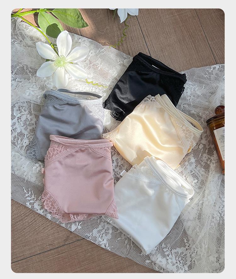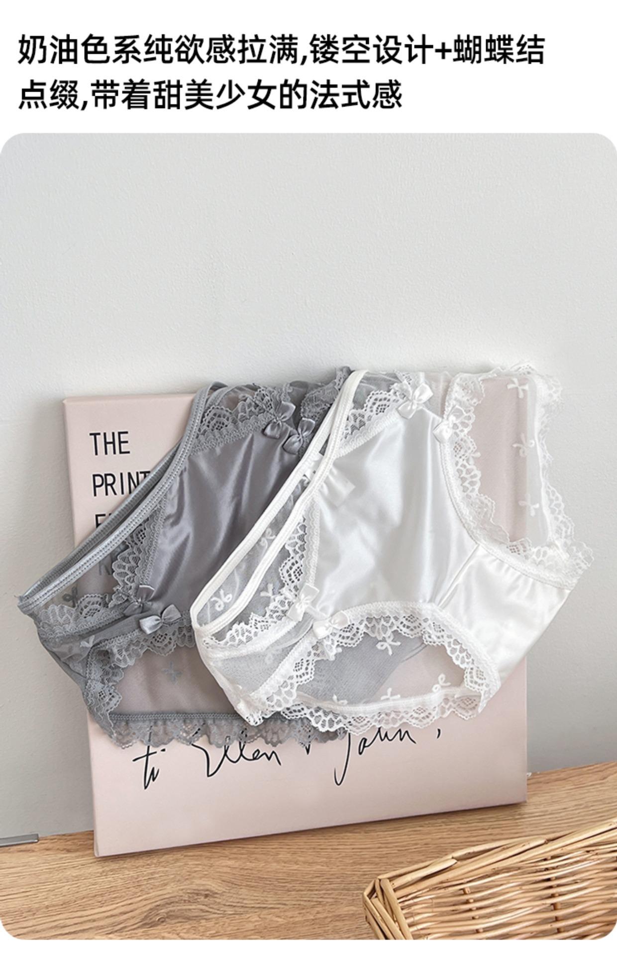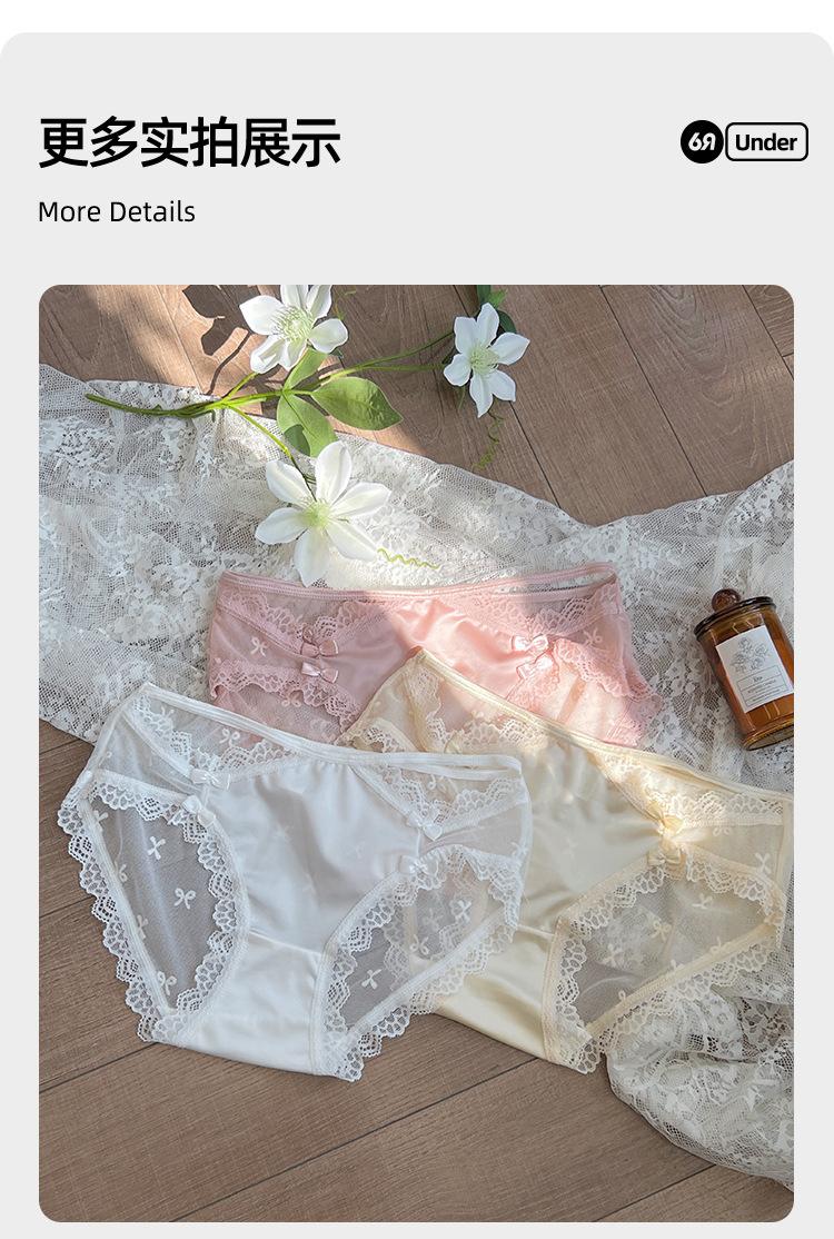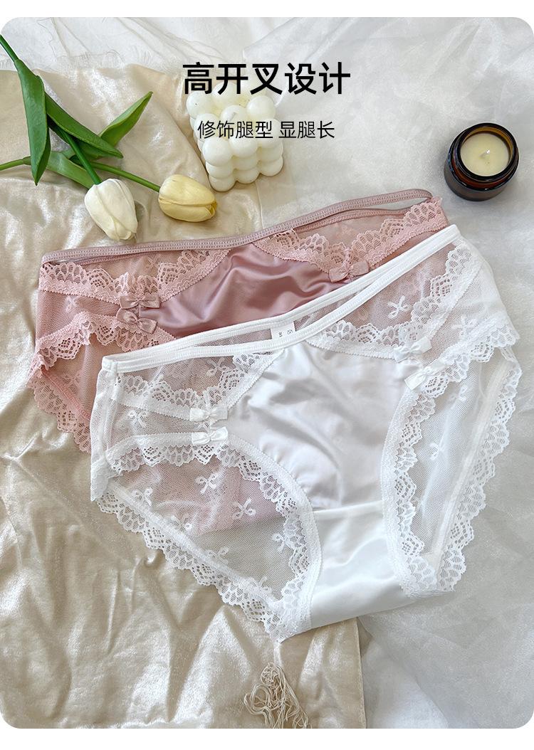Ropa interior de encaje sexy para mujer, de algodón puro, con entrepierna inferior, seda francesa, piel pura, transpirable, bragas para mujer