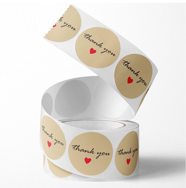A12 kraft paper thank you stickers*25mm-500 stickers