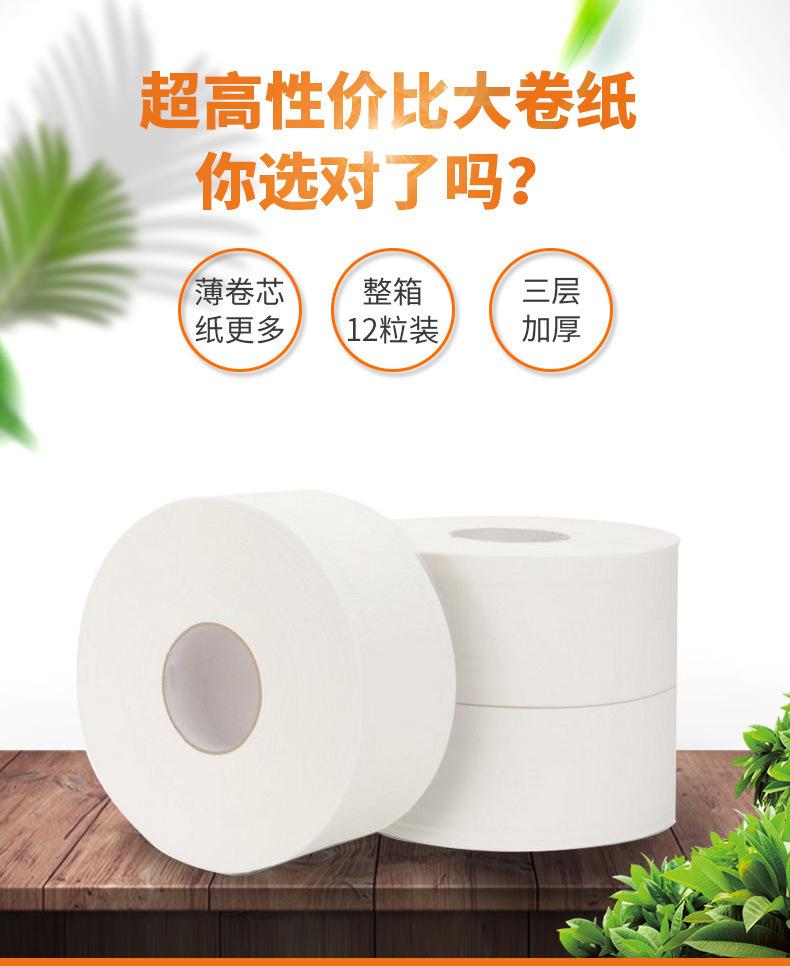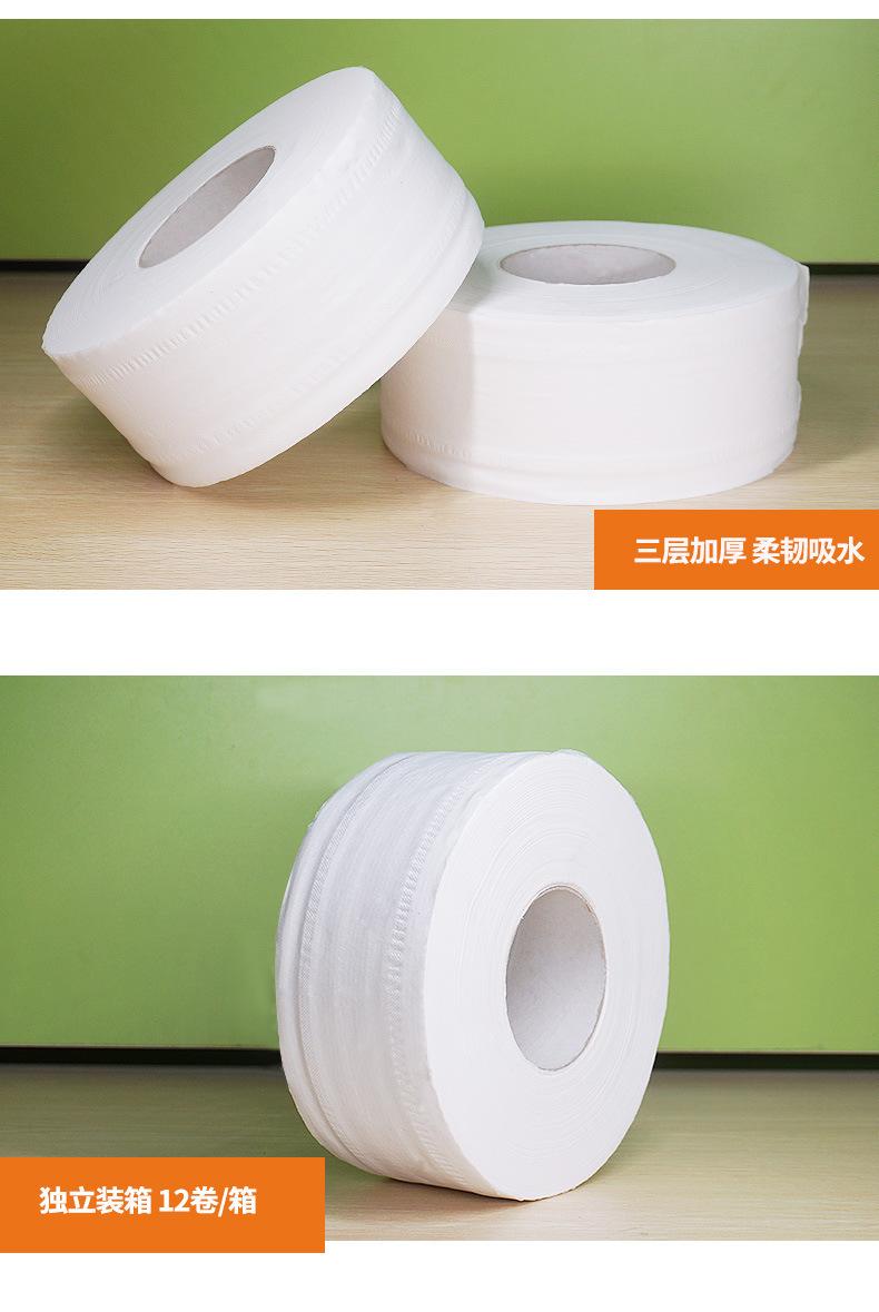 1. Rollos jumbo de pulpa de madera pura de tres capas engrosadas, 12 rollos por caja.