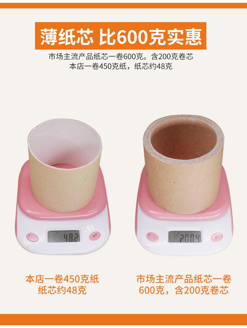 2. Núcleo de papel delgado, en comparación con los del mercado, ¡una caja contiene 600 g más de papel!