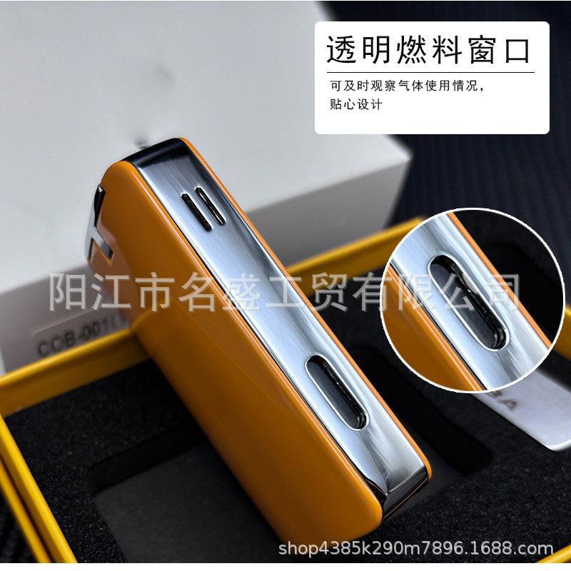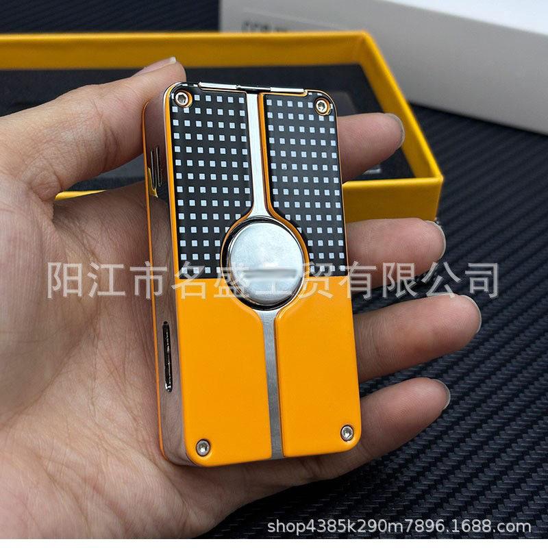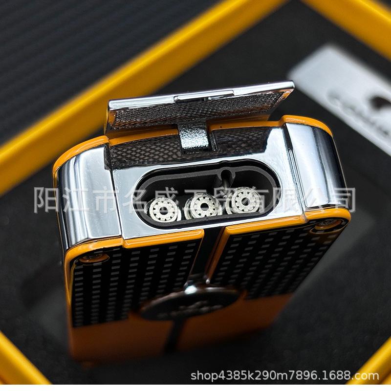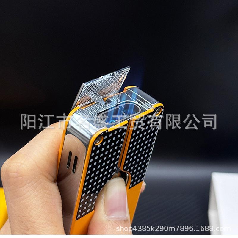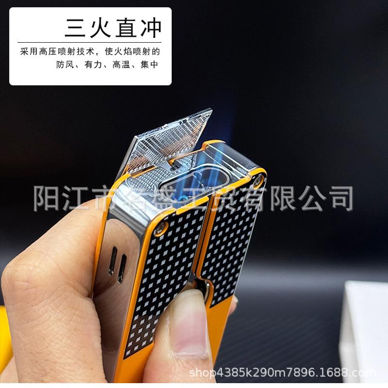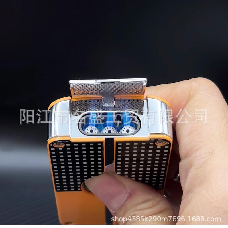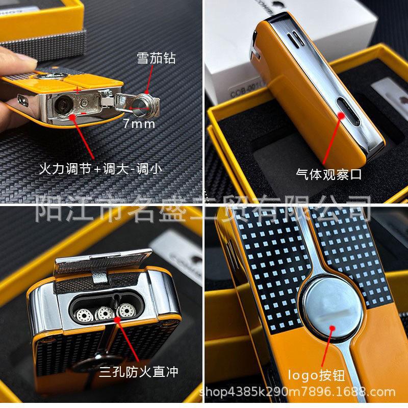 Encendedor de cigarros inflable de tres agujeros con llama azul, portátil, de metal, resistente al viento, perforador de cigarros.