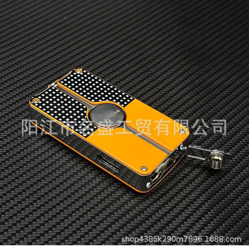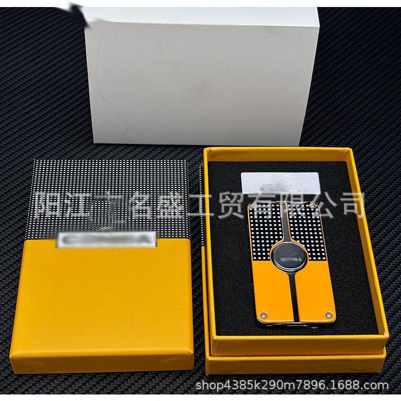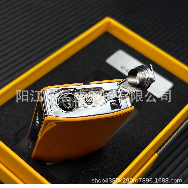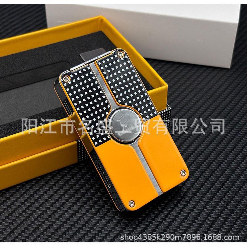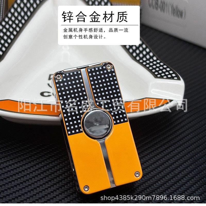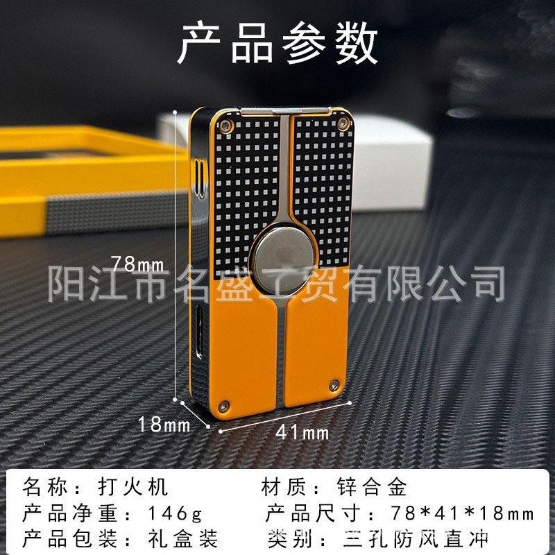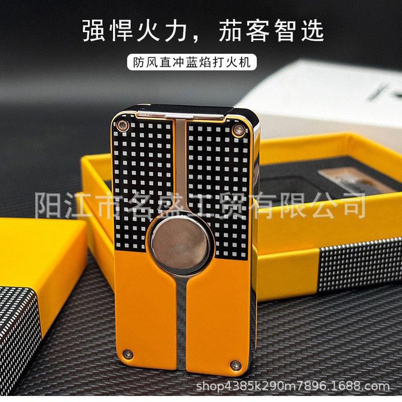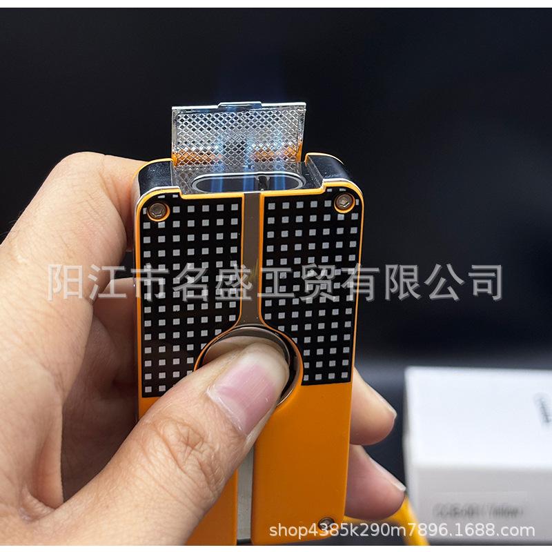 Encendedor de cigarros inflable de tres agujeros con llama azul, portátil, de metal, resistente al viento, perforador de cigarros.