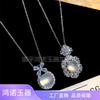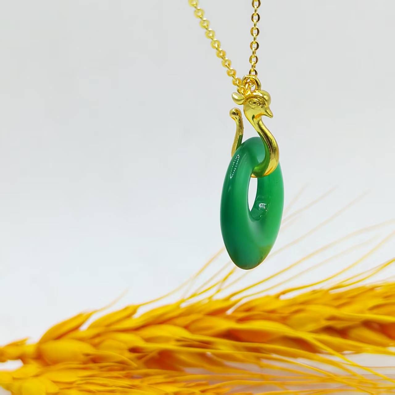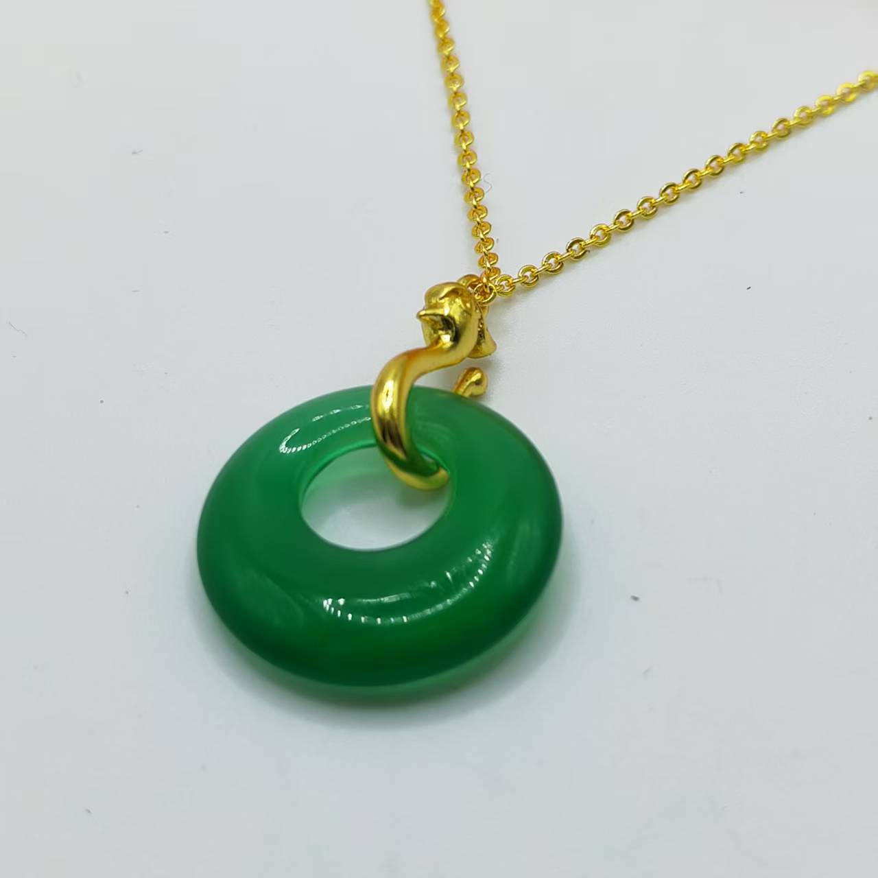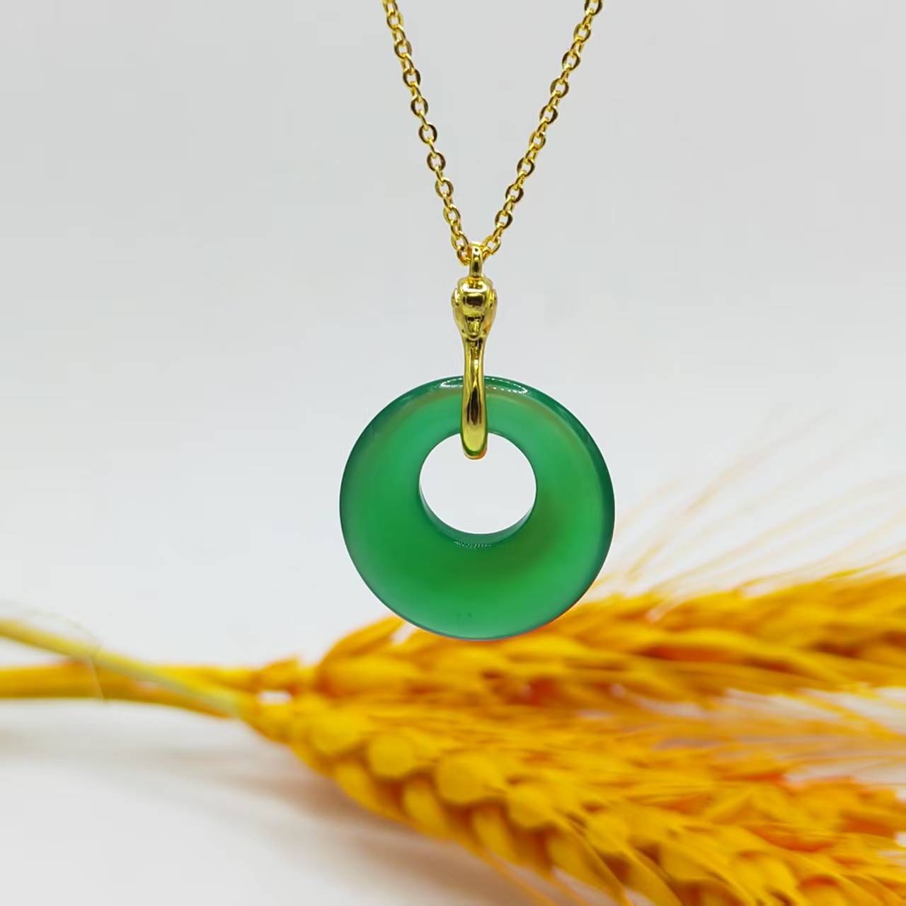 Colgante de calcedonia verde hielo natural de la serie universal para mujer, collar con hebilla segura, colgante de jade de estilo chino, cadena universal para clavícula.