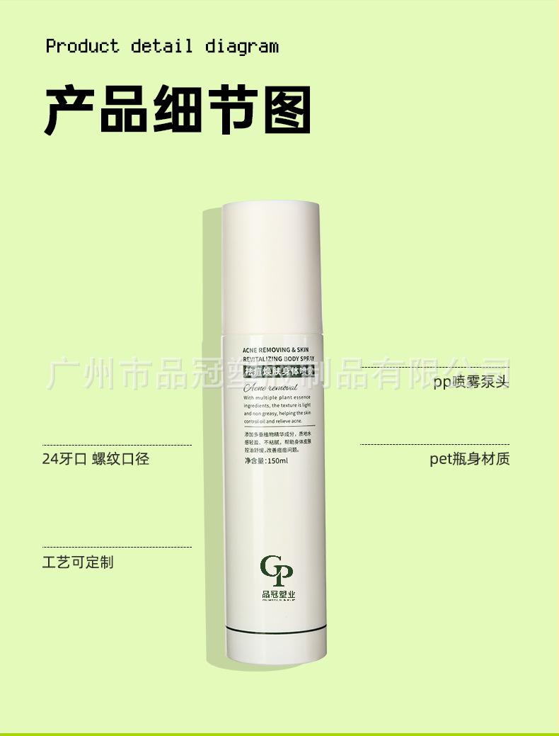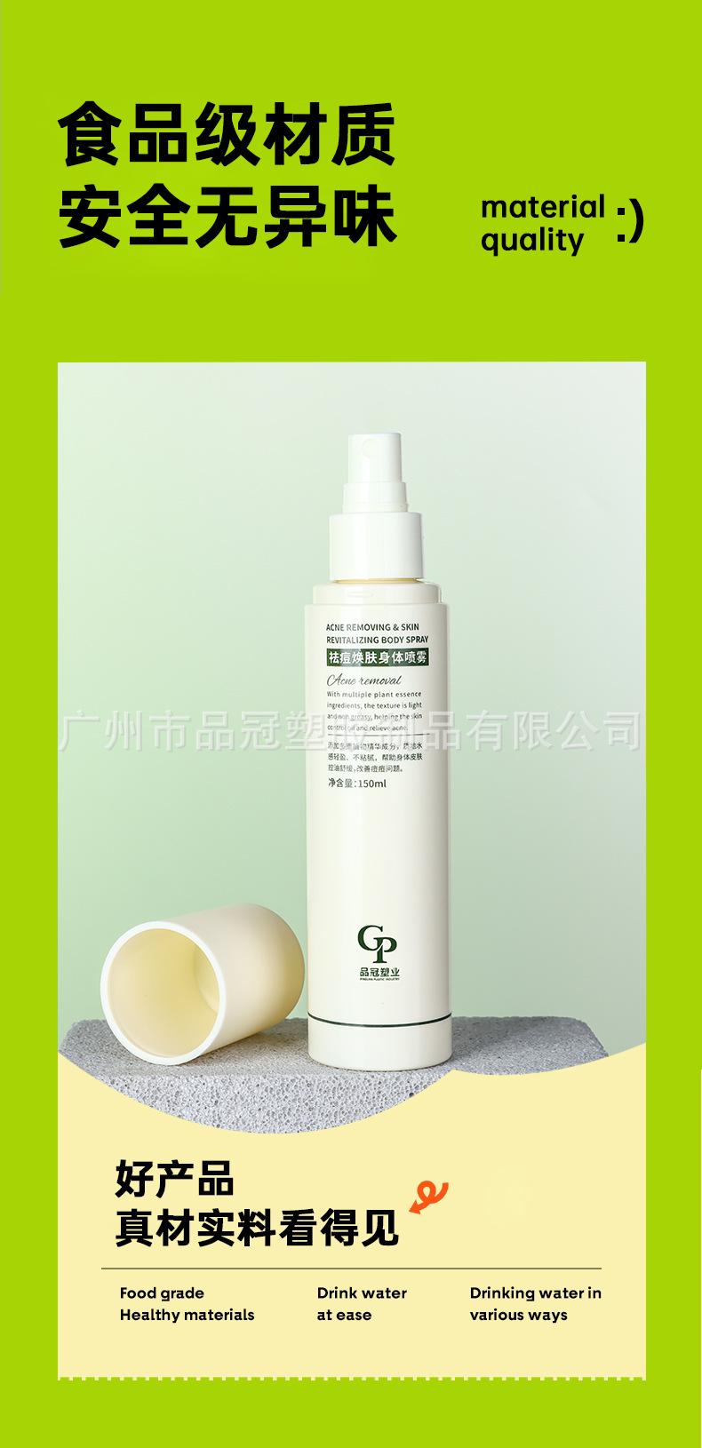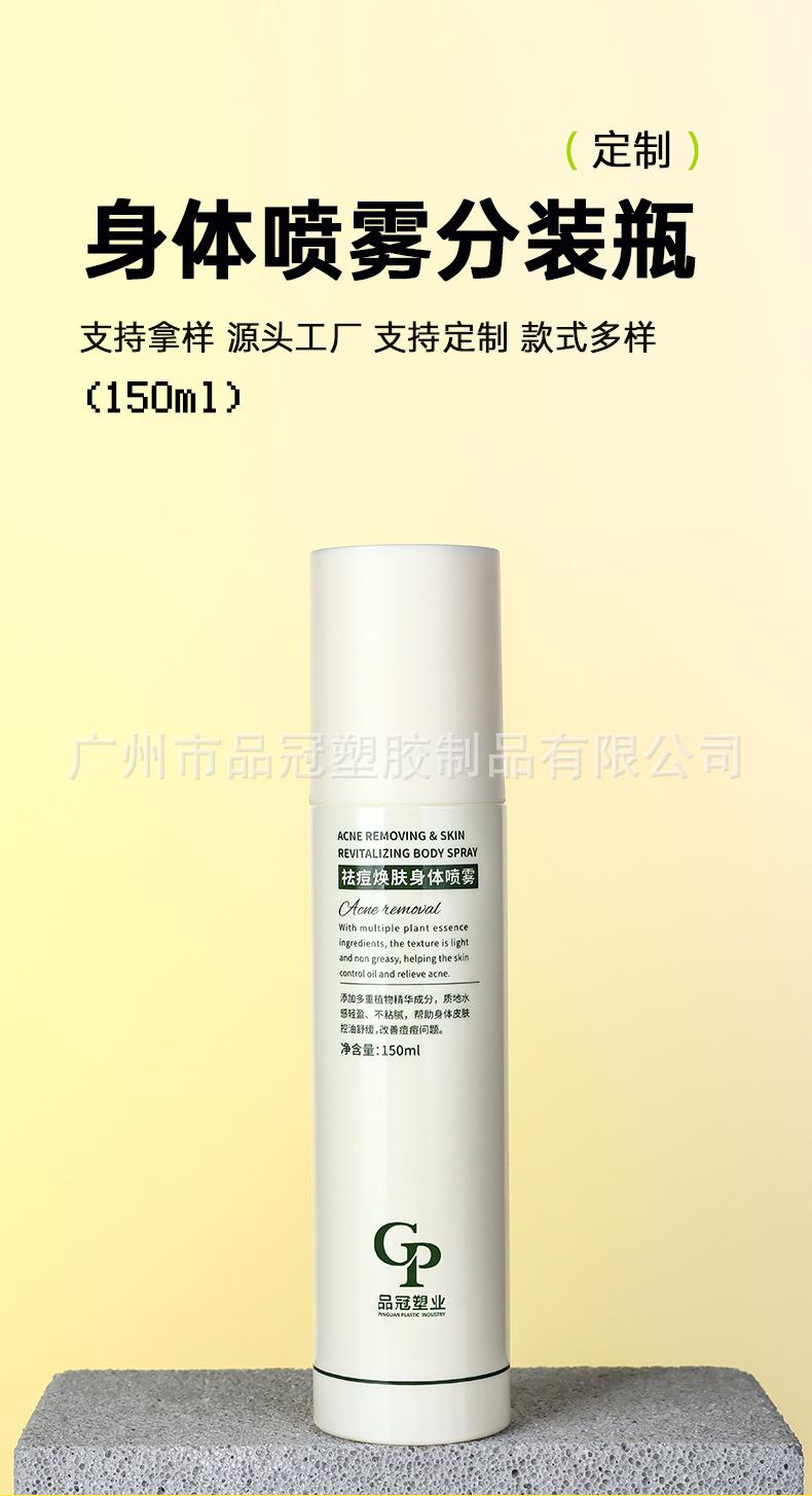 Botella de spray exfoliante Pin Guan, venta al por mayor, recta, de PET, para loción, 150 ml, para cosméticos.