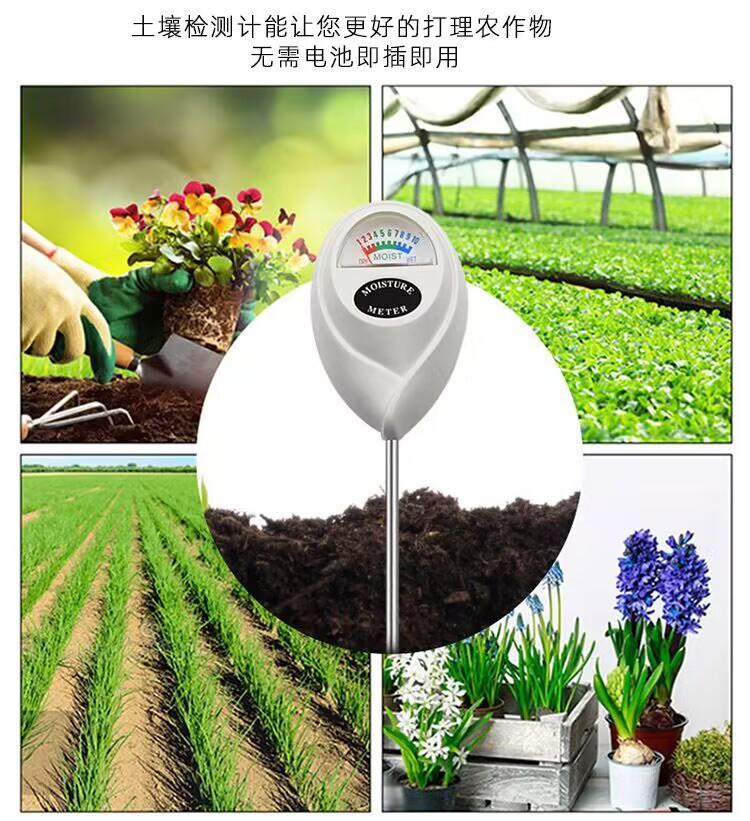 Medidor de humedad del suelo de cabeza redonda blanca, detector de suelo uno en uno, medidor de humedad del suelo, detector de suelo hortícola