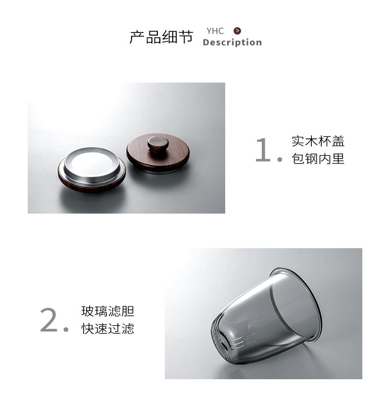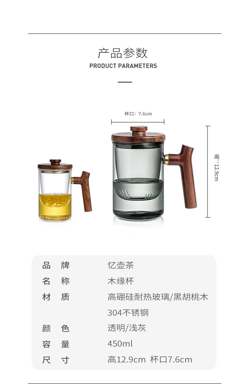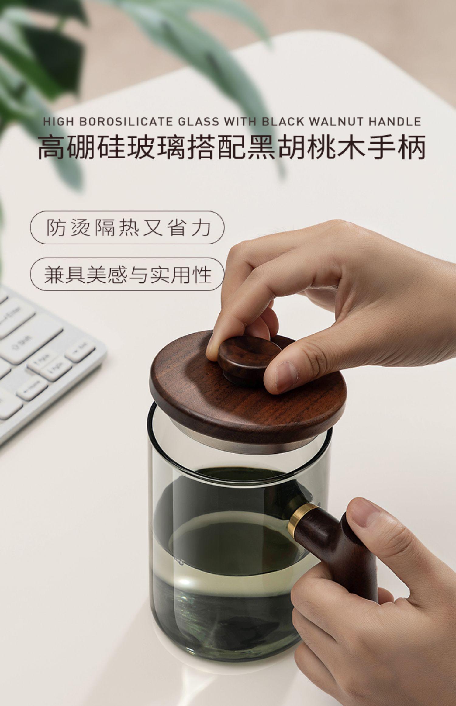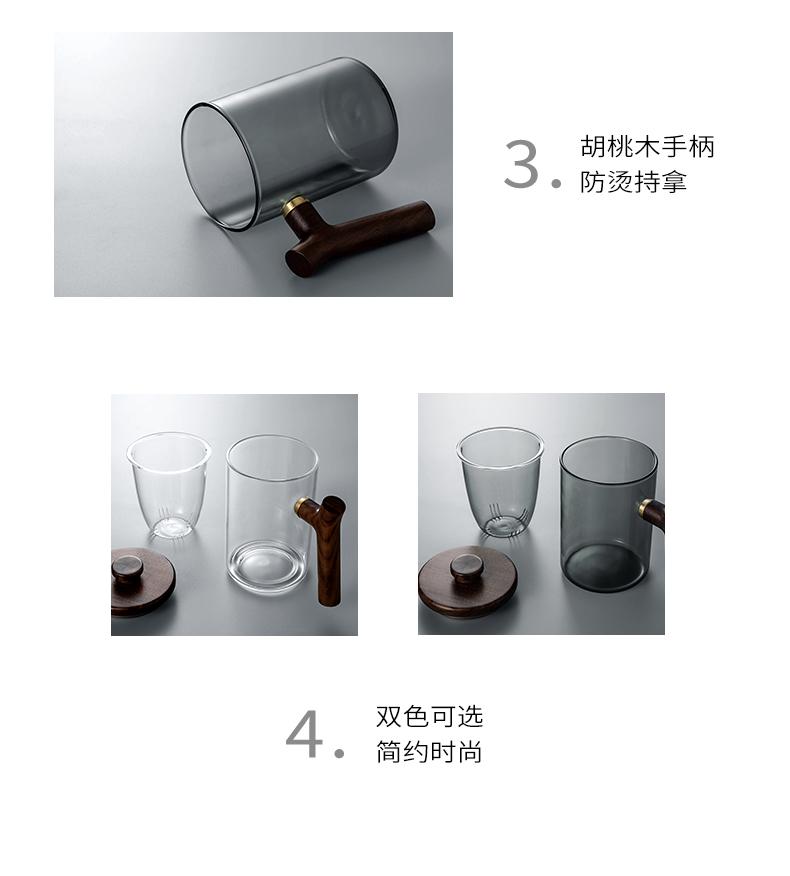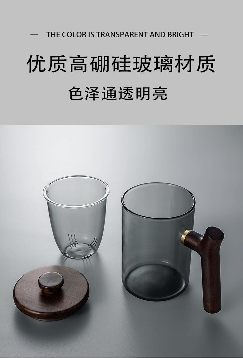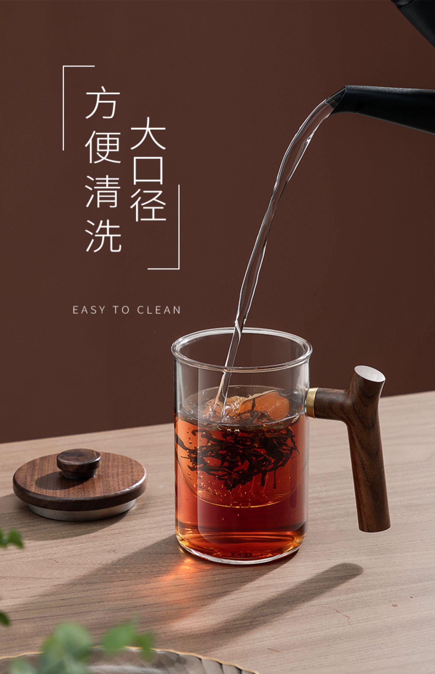 Taza de té de vidrio A6L con filtro, taza de té con separación de agua, taza de ceremonia de té Kung Fu, taza de oficina con mango de madera