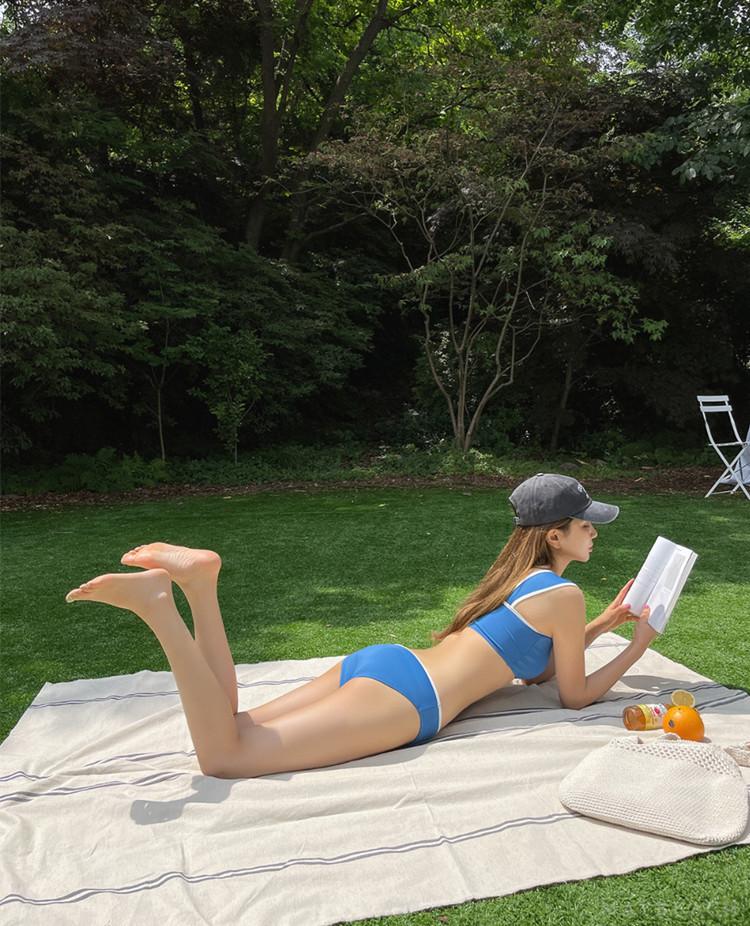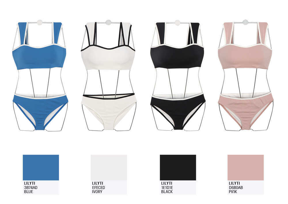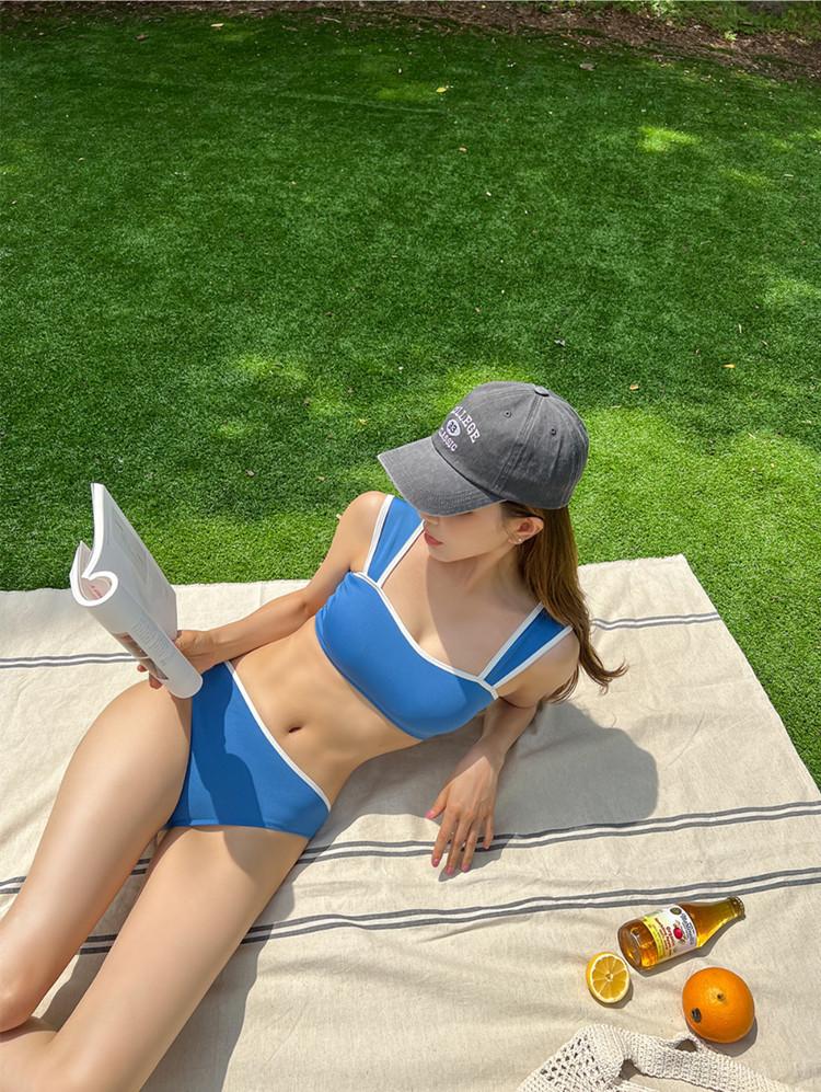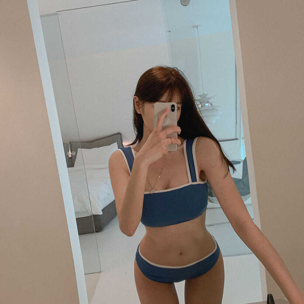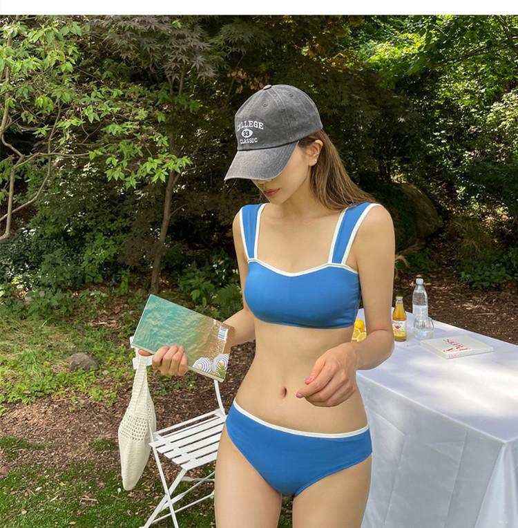Bikini de dos piezas deportivo al por mayor de fábrica para pecho pequeño, sexy top de tubo, traje de baño de color sólido, bikini con realce para mujer