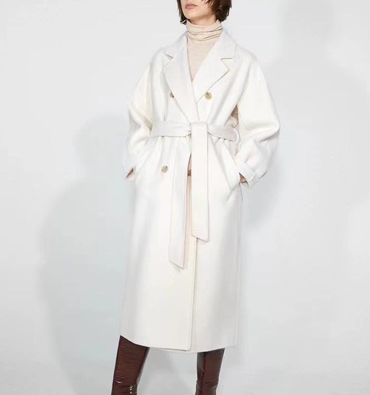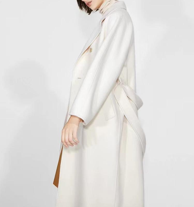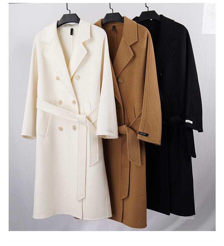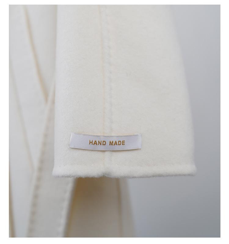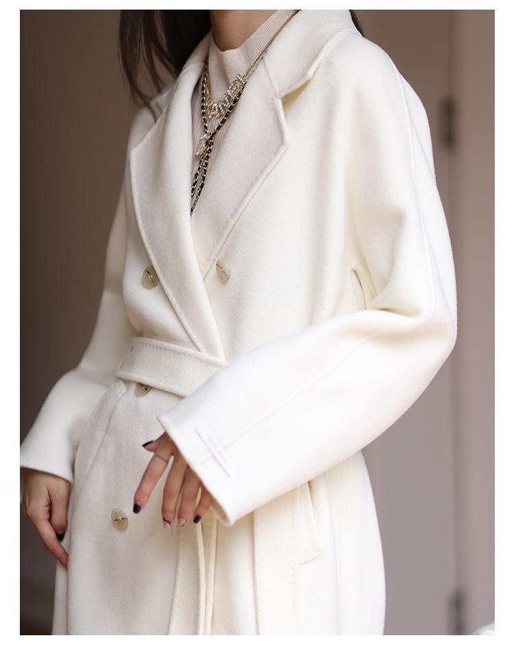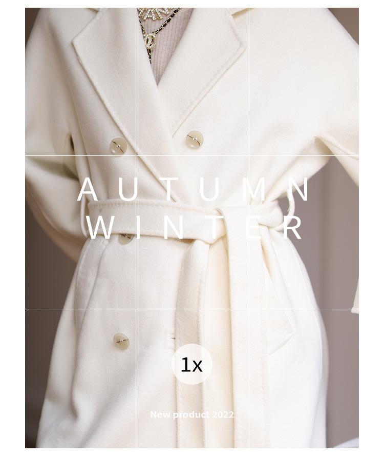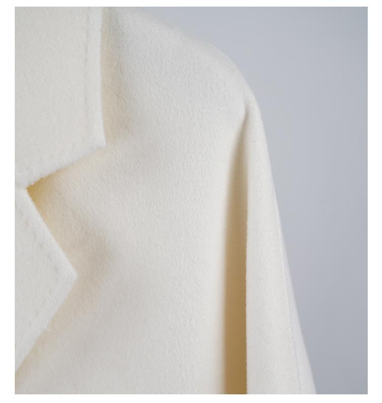 Abrigo de Cachemira Blanco de Doble Cara para Mujer 2023 Otoño e Invierno Nuevo Abrigo de Lana de Doble Cara con Cordones y Doble Botonadura