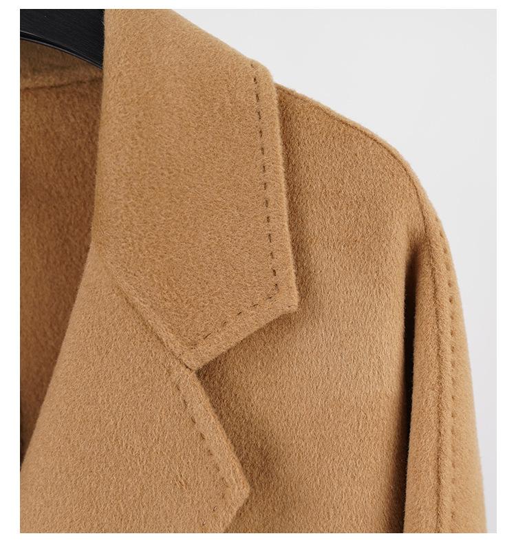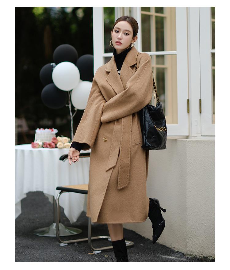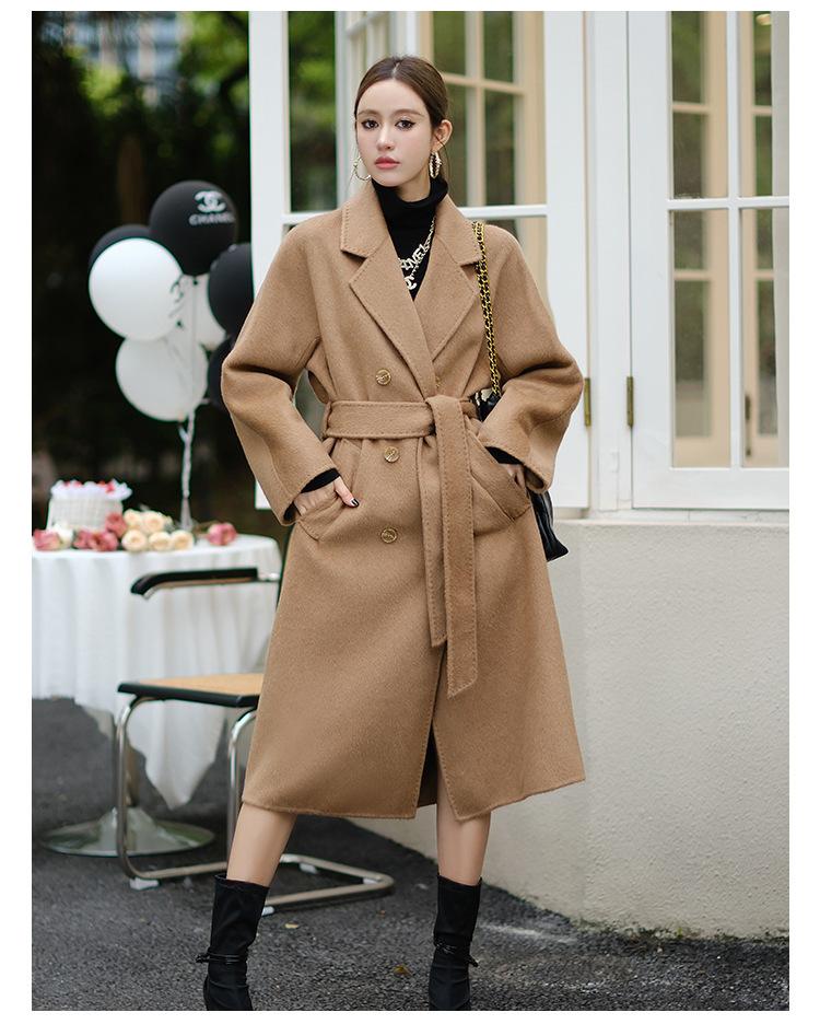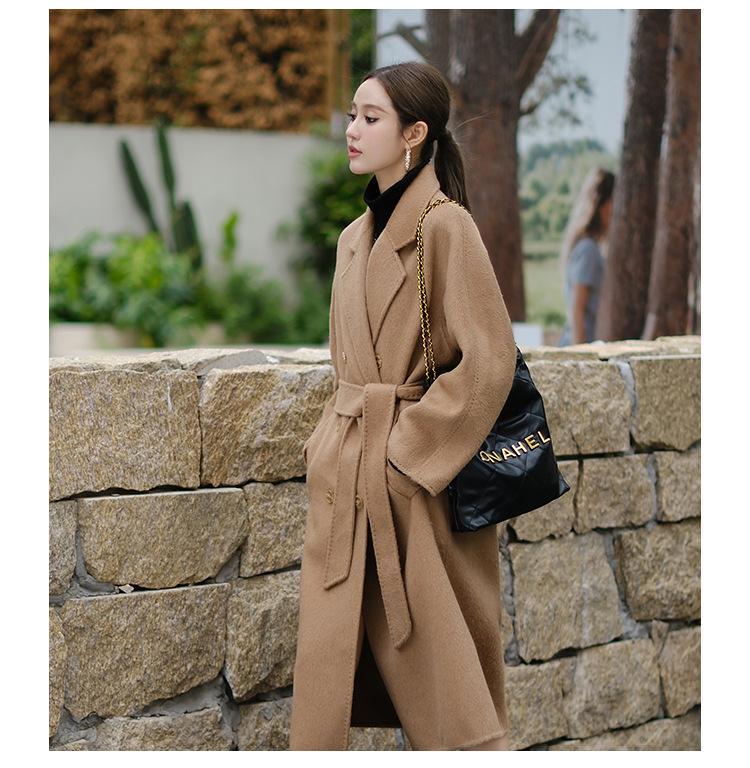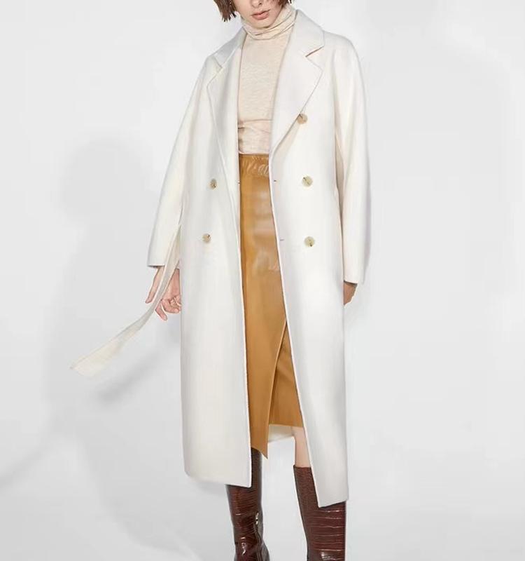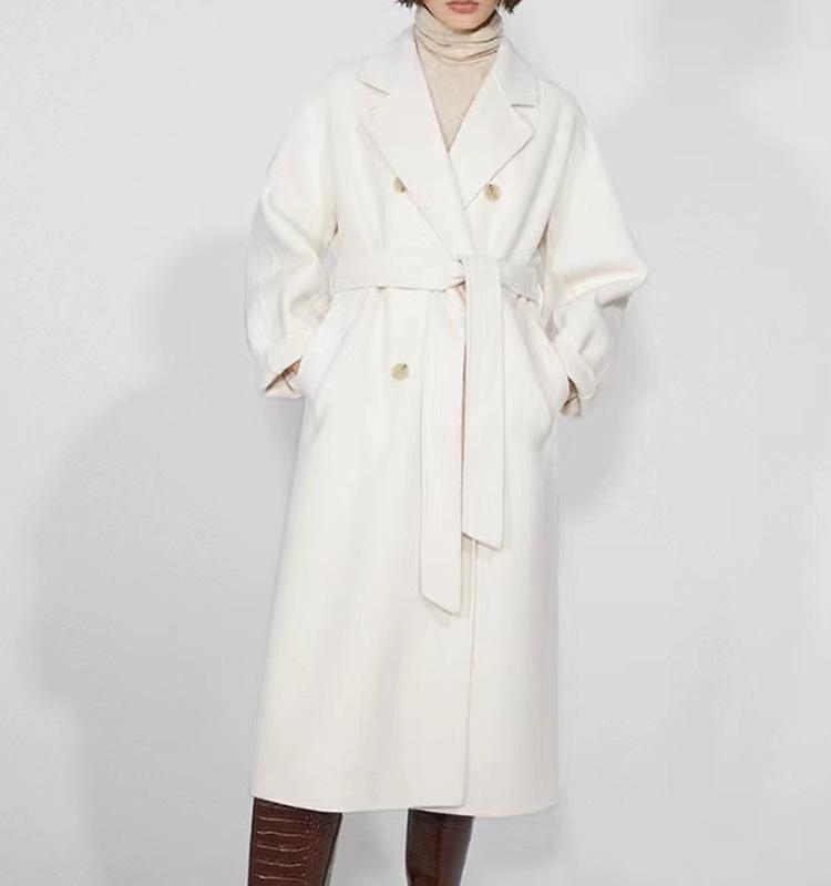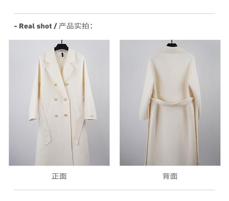 Abrigo de Cachemira Blanco de Doble Cara para Mujer 2023 Otoño e Invierno Nuevo Abrigo de Lana de Doble Cara con Cordones y Doble Botonadura