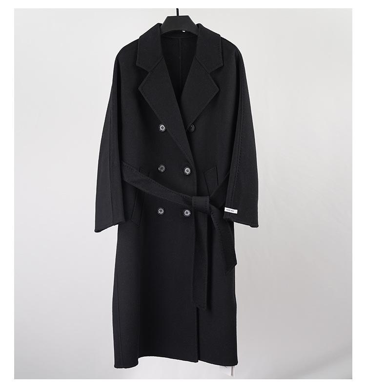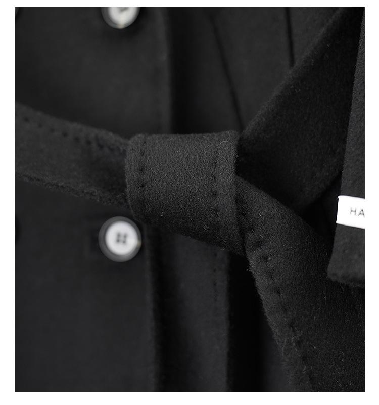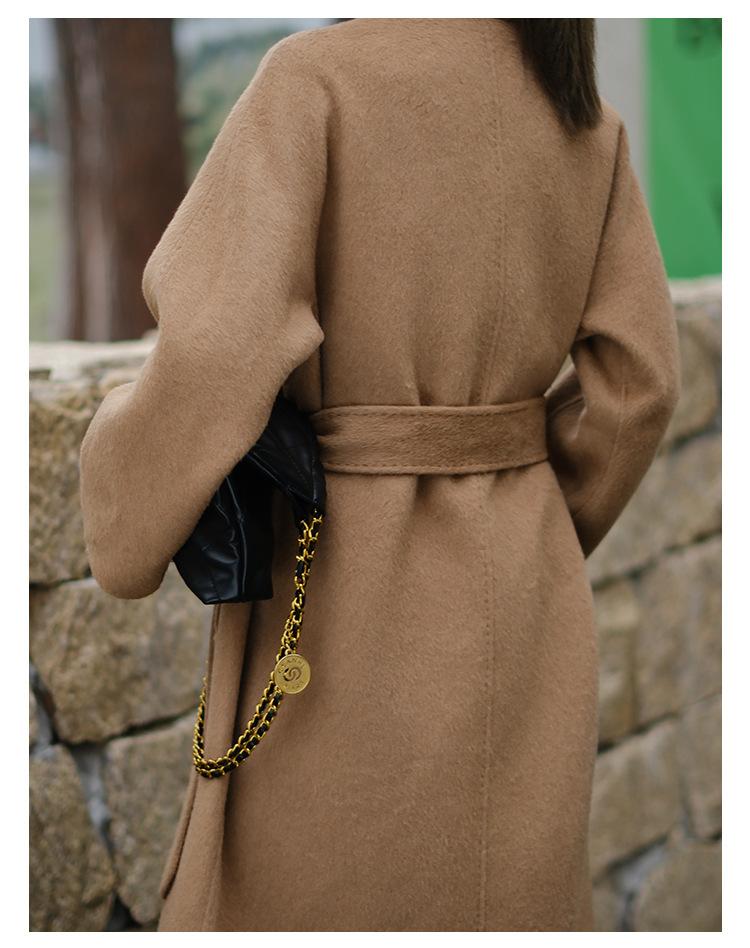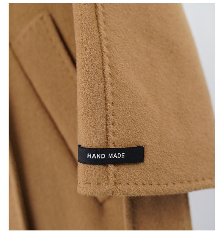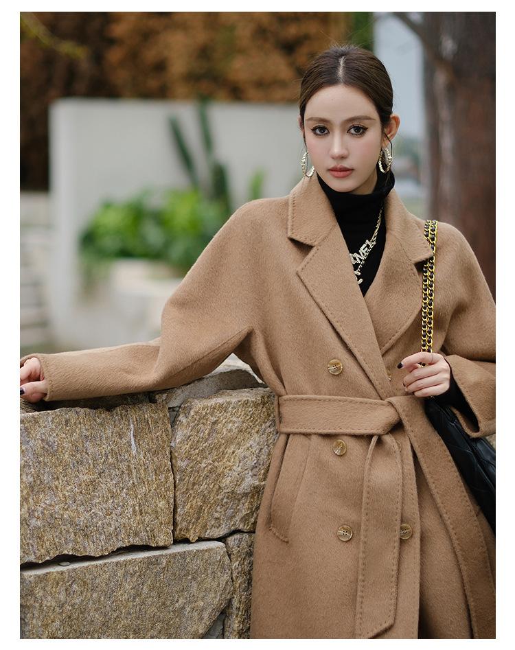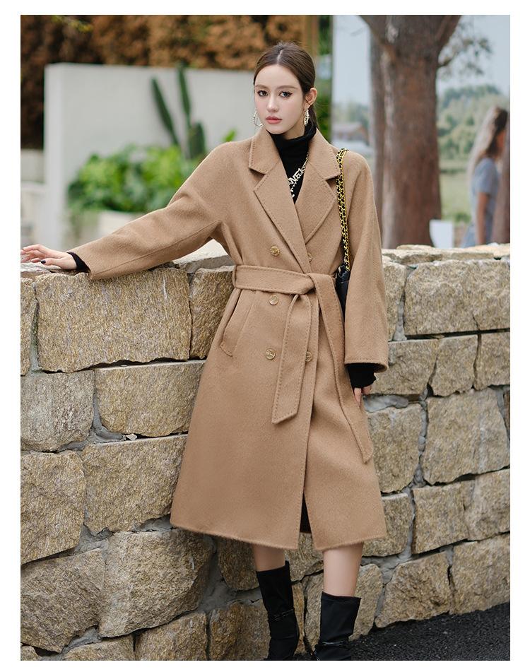Abrigo de Cachemira Blanco de Doble Cara para Mujer 2023 Otoño e Invierno Nuevo Abrigo de Lana de Doble Cara con Cordones y Doble Botonadura