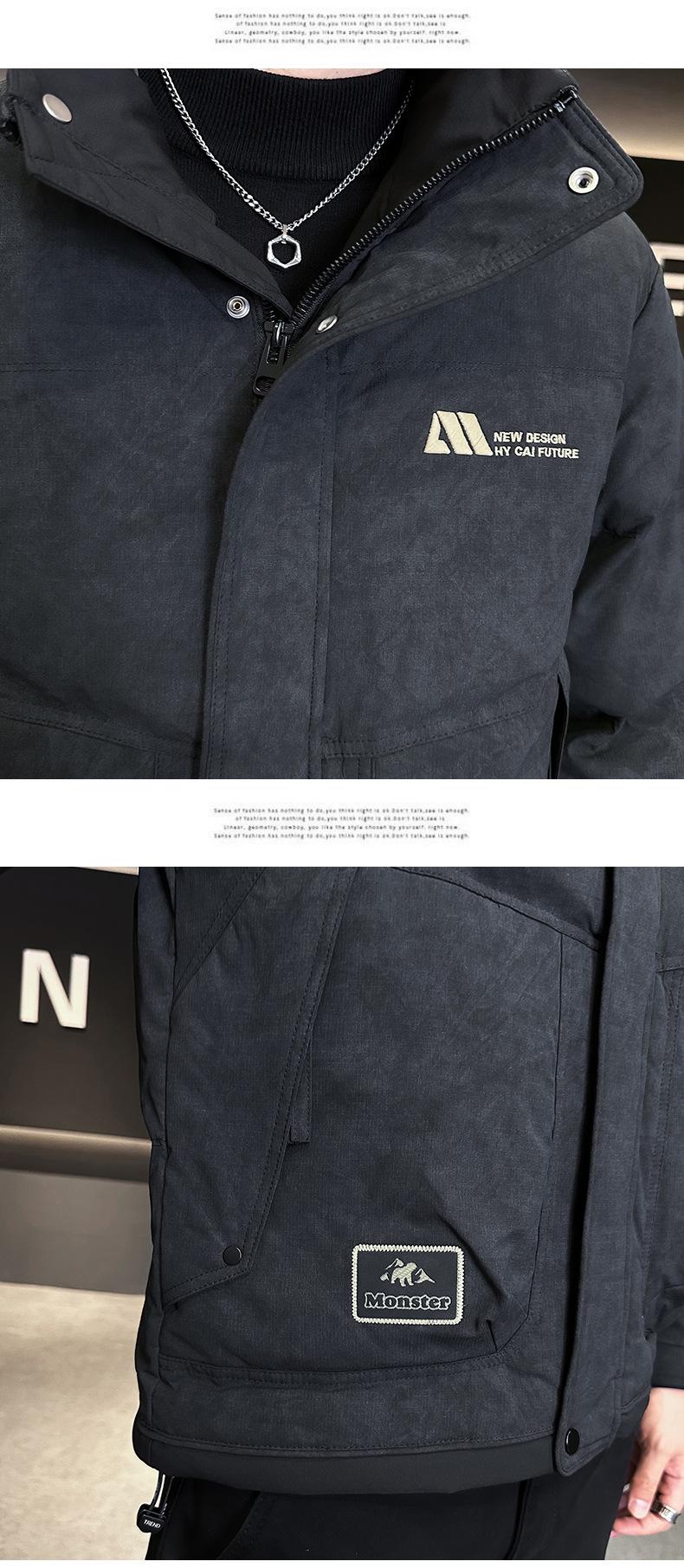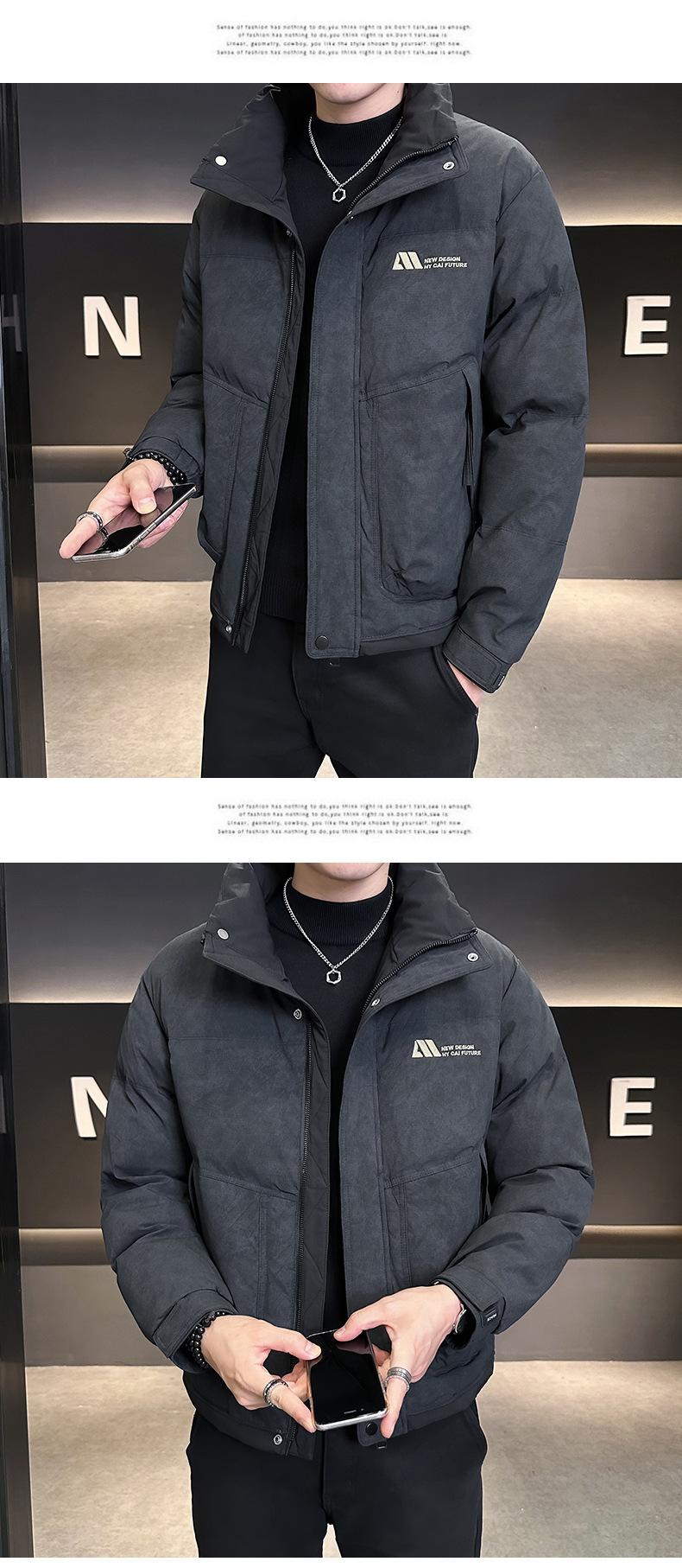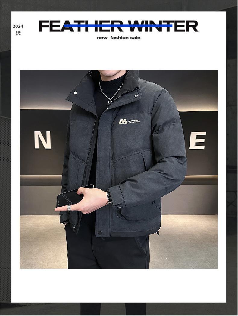 Chamarra de Plumas con Sentido del Diseño para Hombre Otoño e Invierno 2024 Corta Marca de Moda Ligera Gruesa Sentido Chaqueta de Invierno para Hombre Negro