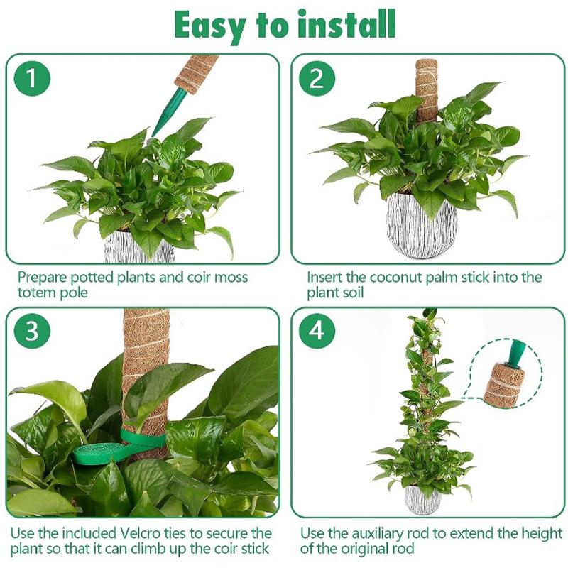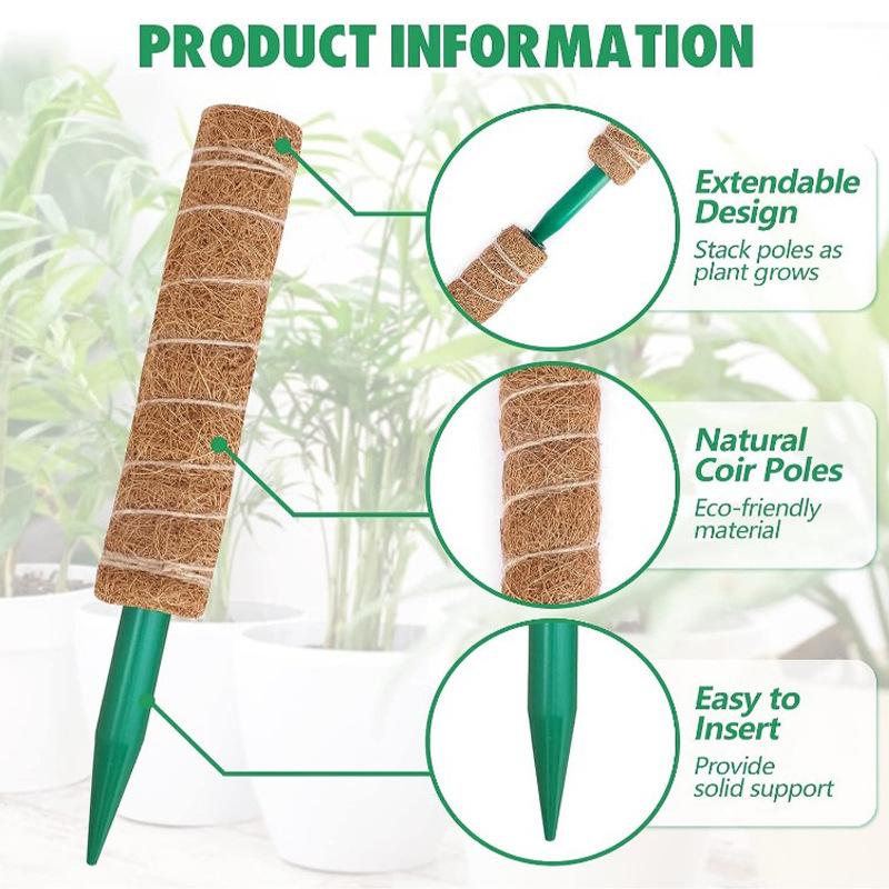 Nueva herramienta de soporte para rábano verde, varilla de musgo, base de PVC, soporte para plantas, cuerda de cáñamo, base de palma de coco, soporte de jardinería