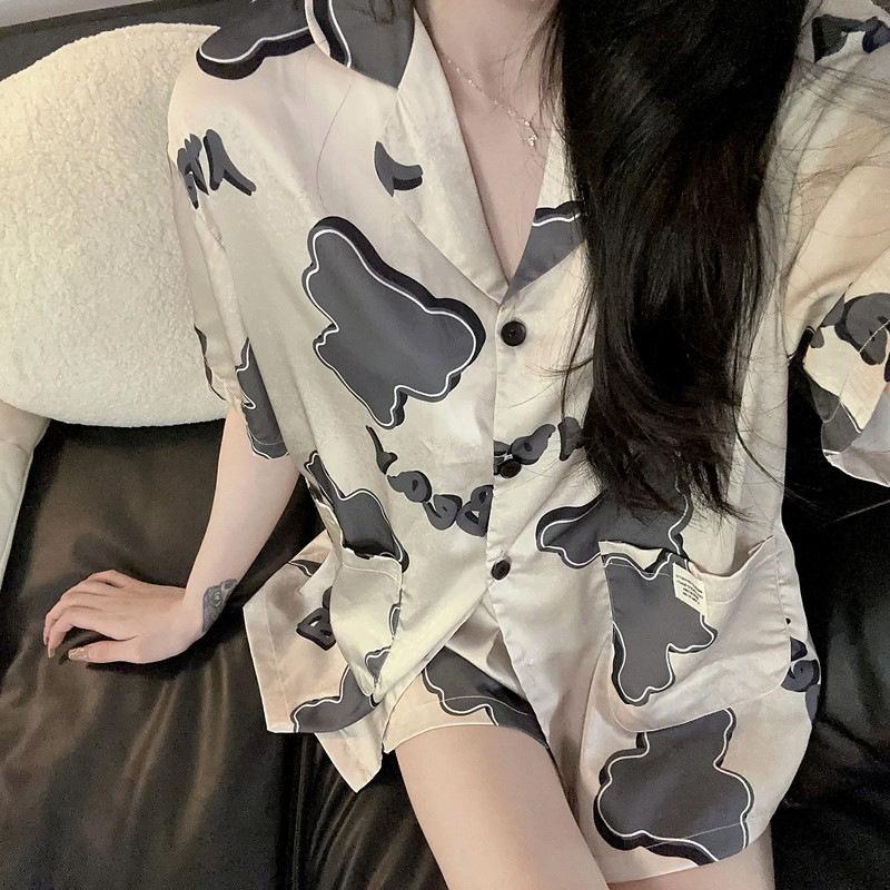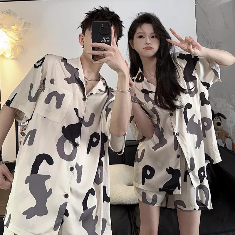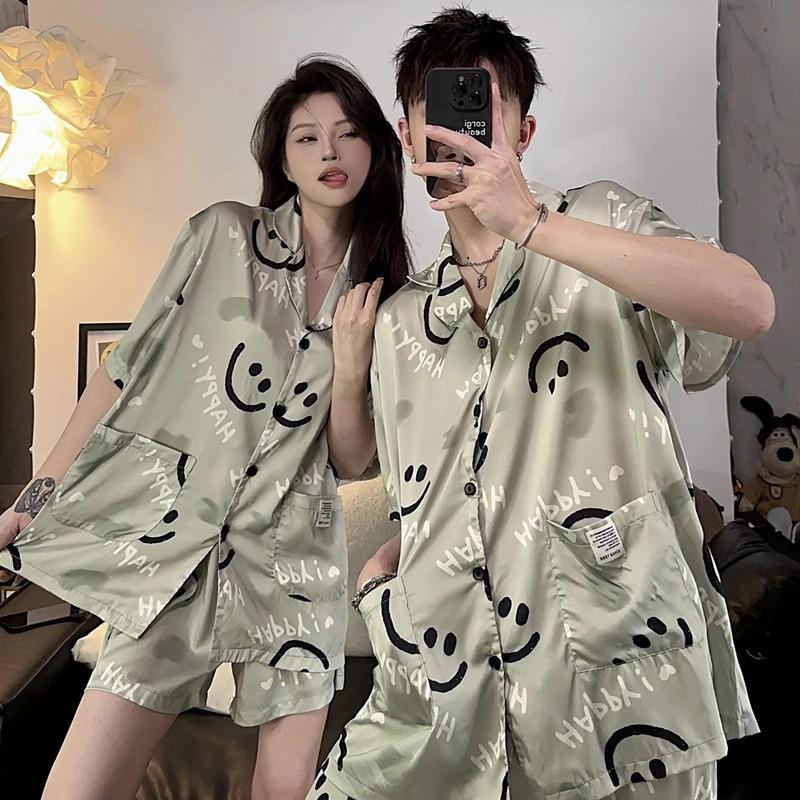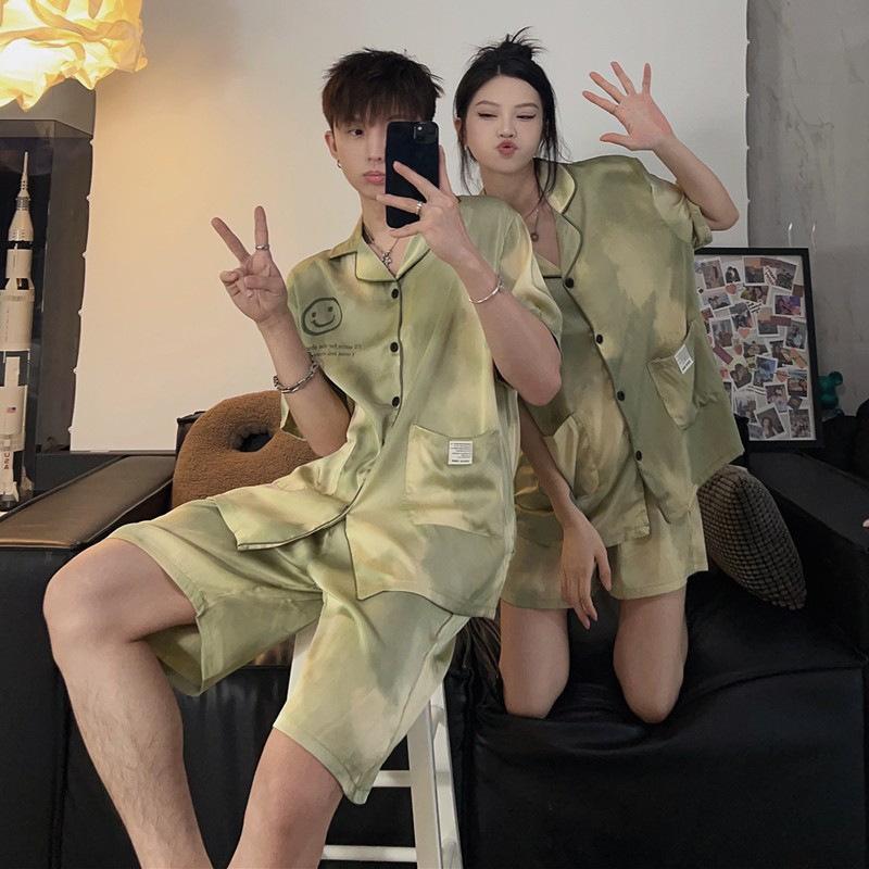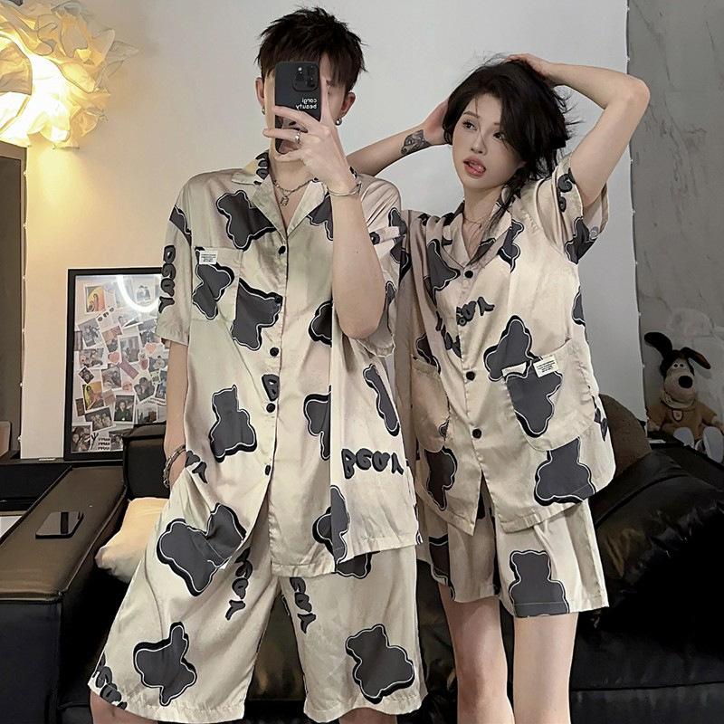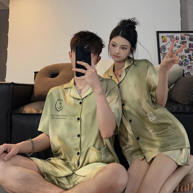 Pijamas de verano para parejas, de seda ultrafina, para un hombre y una mujer, para estudiantes, para el hogar, con pantalones cortos de manga corta.