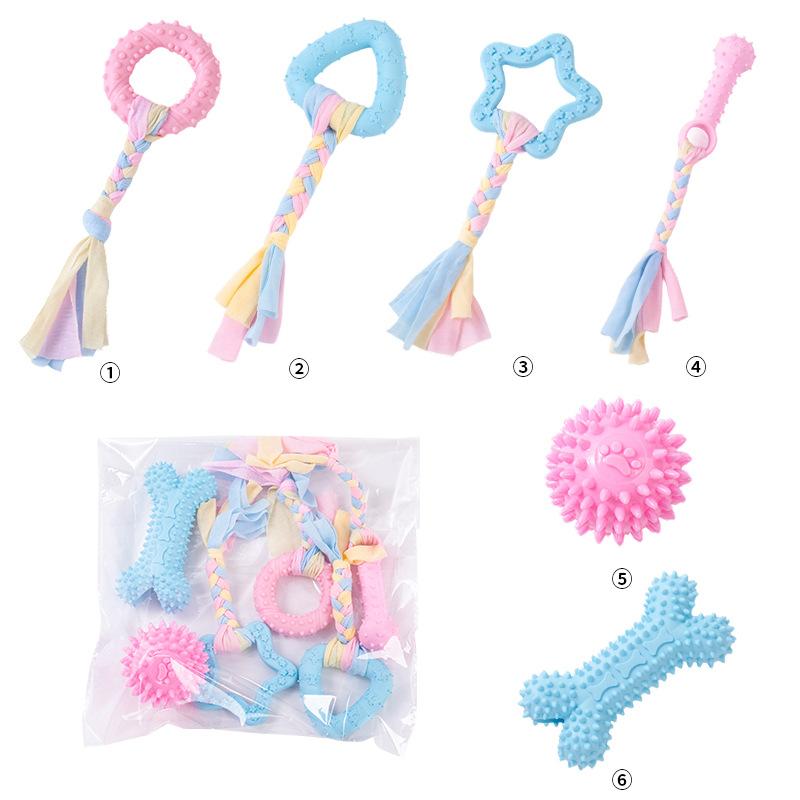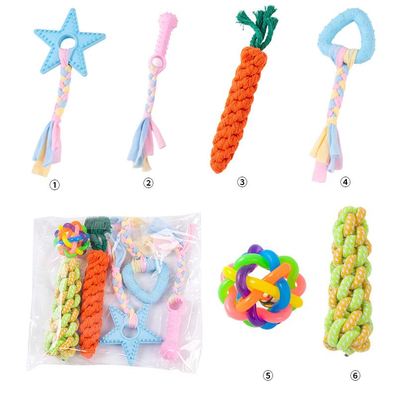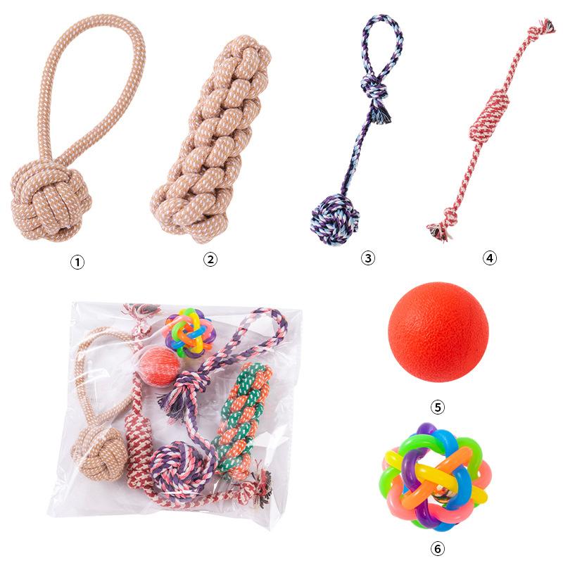 Juguete para perros de Amazon, cuerda de algodón anudada, molares, juguete tejido, pelota de juguete de tres piezas, juego de seis piezas, juguete para mascotas