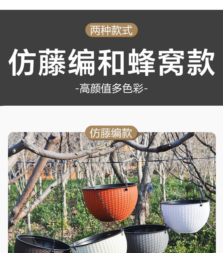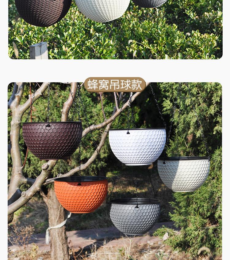 Maceta de ratán de plástico estilo europeo, maceta colgante de Lanlan, maceta colgante de resina para interiores, maceta colgante de nido de abeja al por mayor
