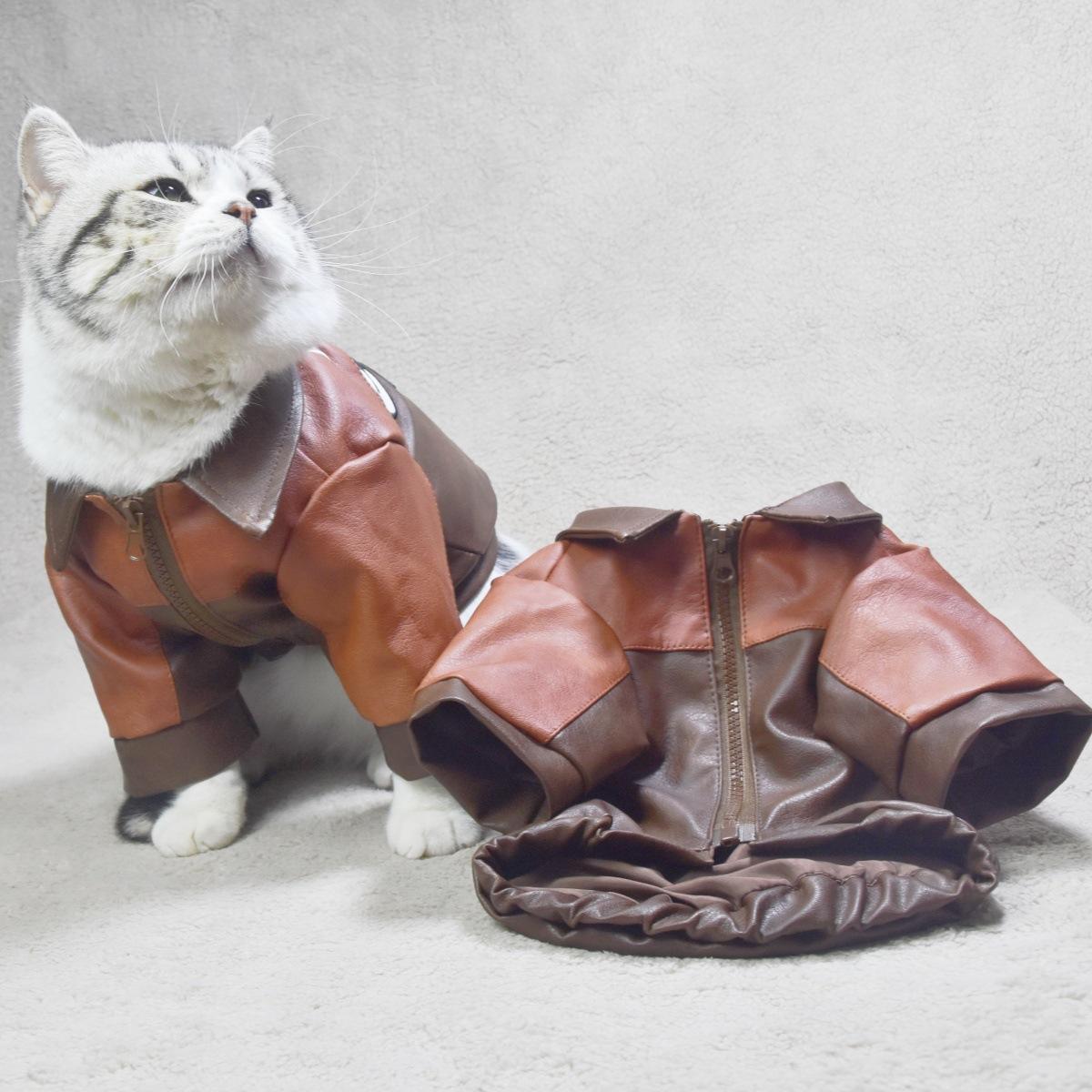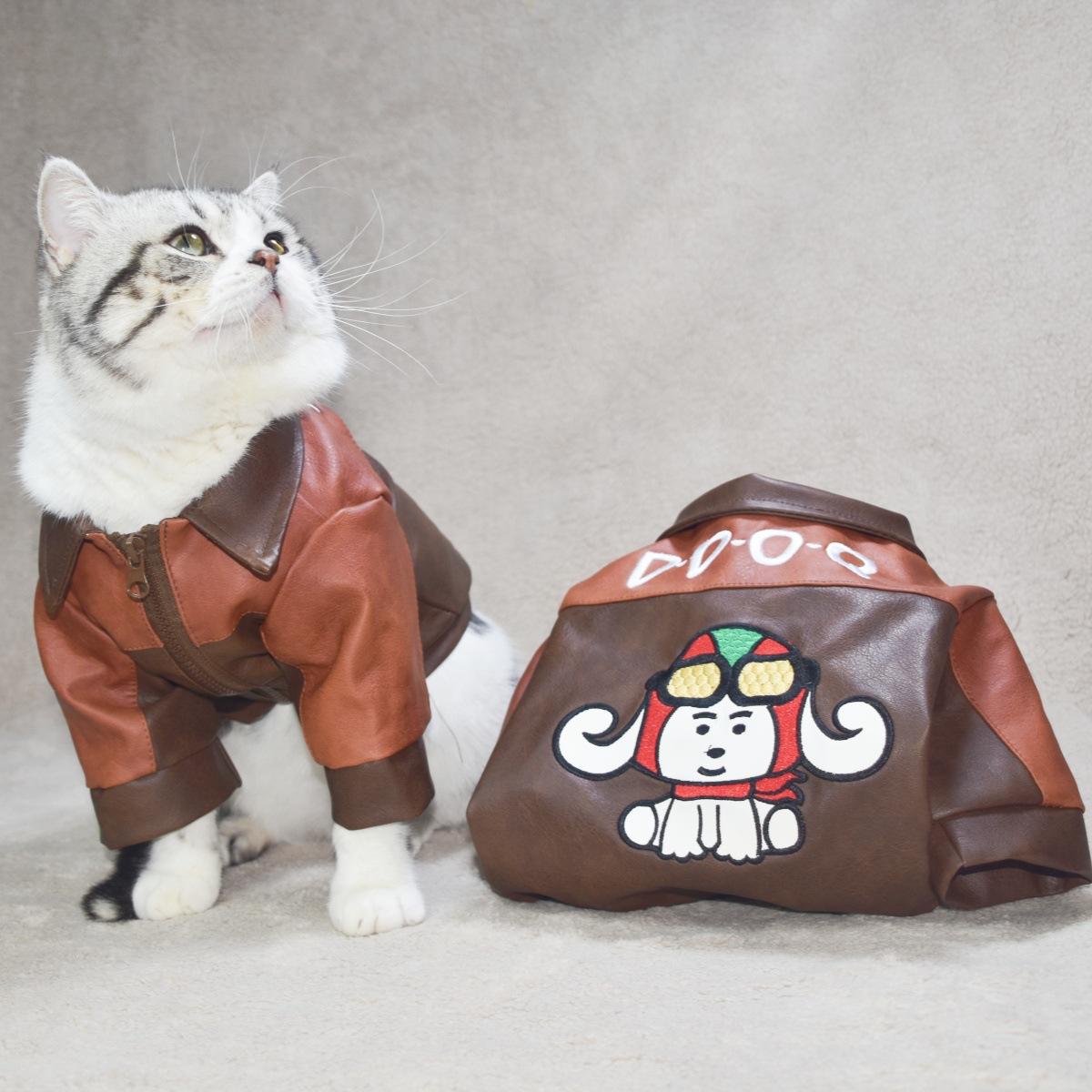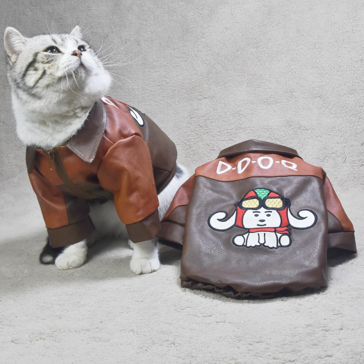 Mascota Gato Perro Primavera y Otoño Locomotora Dibujos Animados Ropa de Cuero Empalme Moda Guapo Estilo Coreano Perro Pequeño y Mediano Osito de Peluche